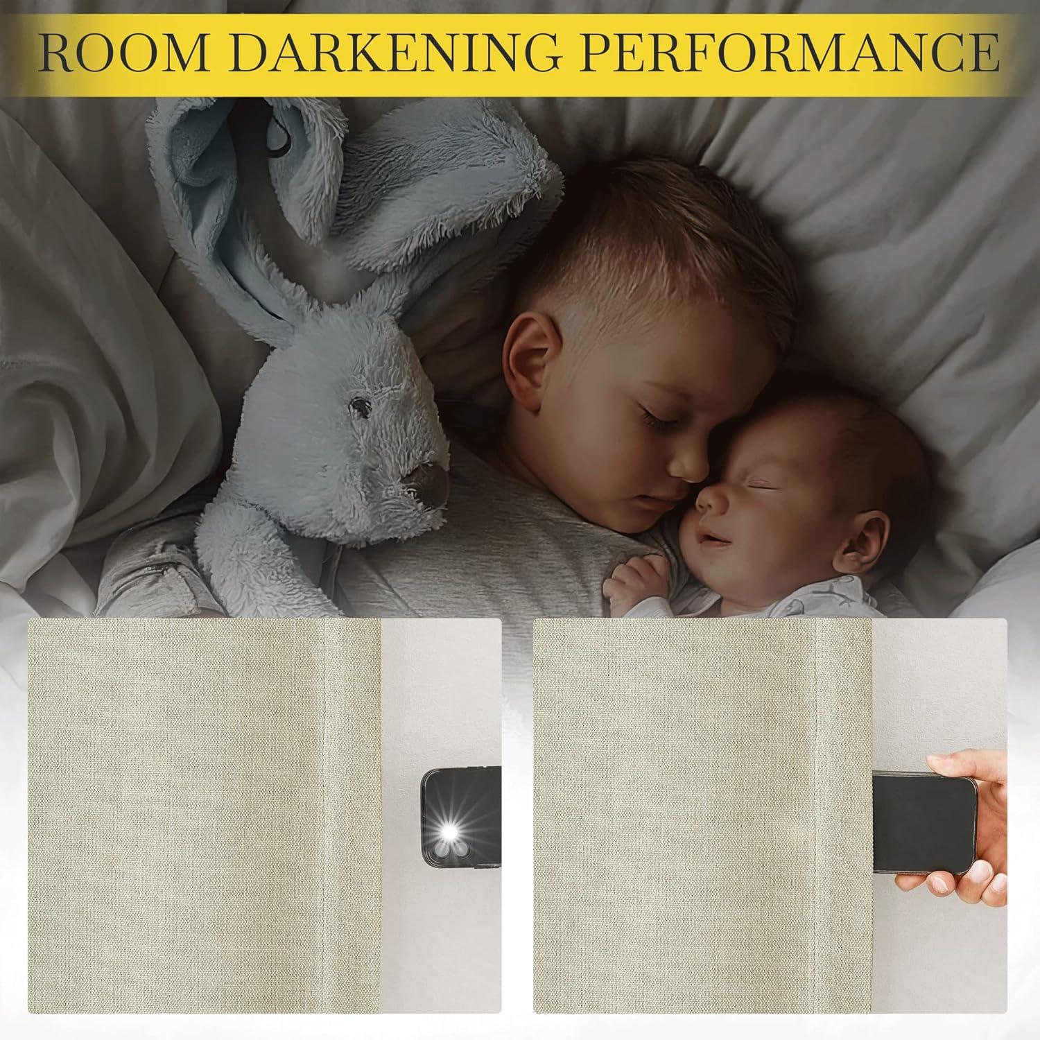 Light Blocking: The room darkening curtains with luxury faux linen textured will block most of the sunlight, heat, cold, and noise out with 100% privacy for your good sleep or rest even during the day.