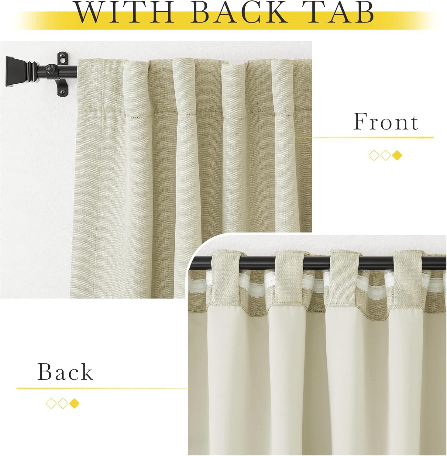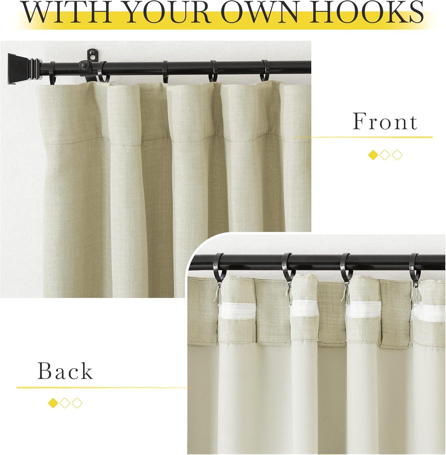 Ready Made: Package includes 2 panels of faux linen room darkening curtains, each measuring 50″W (100″W for pair), with 3 hanging options(2.2″ diam) to suit most of the standard or decorative curtain rods.
