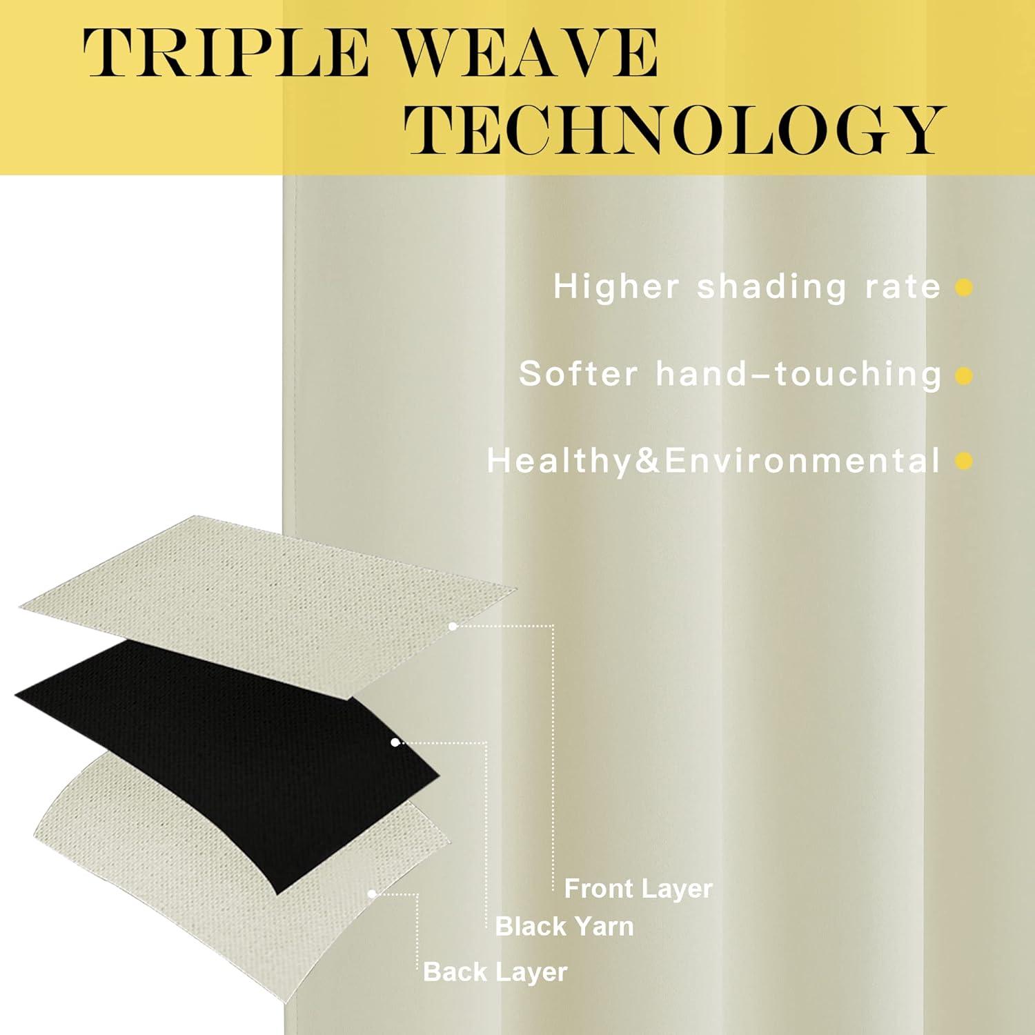 Amazing Material: Super heavy and soft Blackout Curtain Panels are very upmarket. Besides, 85%-99% light blocking, thermal insulated, soundproof, and energy-efficient. Thread trimmed and wrinkle-free, both sides are the same color.