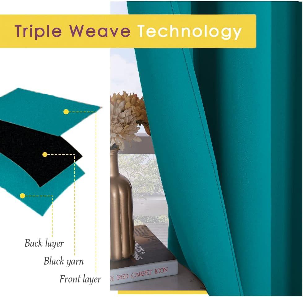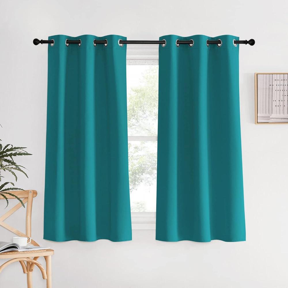 imageNICETOWN Room Darkening Curtains 60 inch Length 2 Panels Peacock Teal 2 Pieces W34 Thermal Insulated Grommet Blackout Curtains for Modern Casual Elegant Bedroom Kids Room Theme Decoration