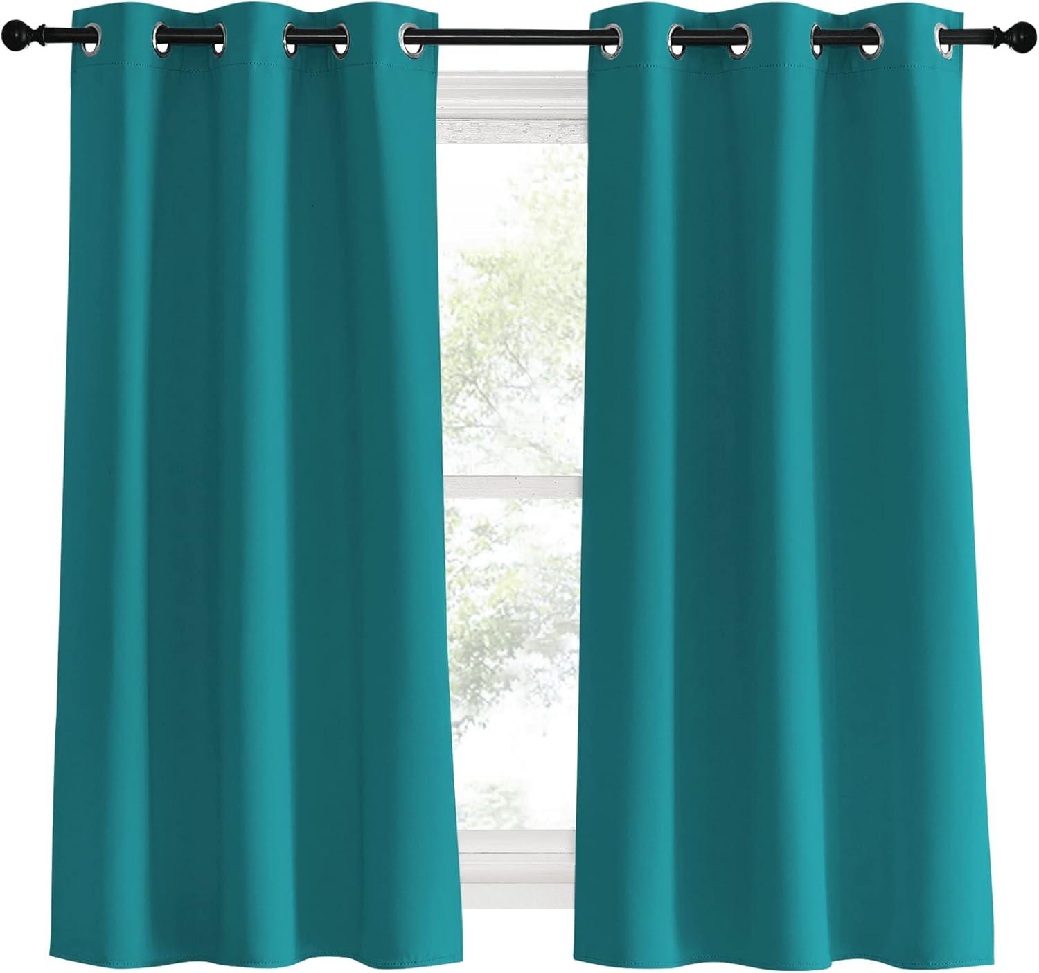 NICETOWN Room Darkening Curtains 60 inch Length 2 Panels, Peacock Teal, 2 Pieces, W34, Thermal Insulated Grommet Blackout Curtains for Modern Casual Elegant Bedroom Kids Room Theme Decoration