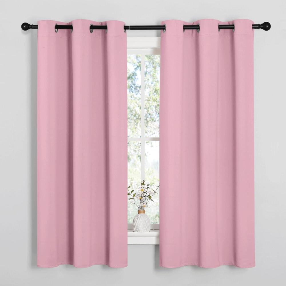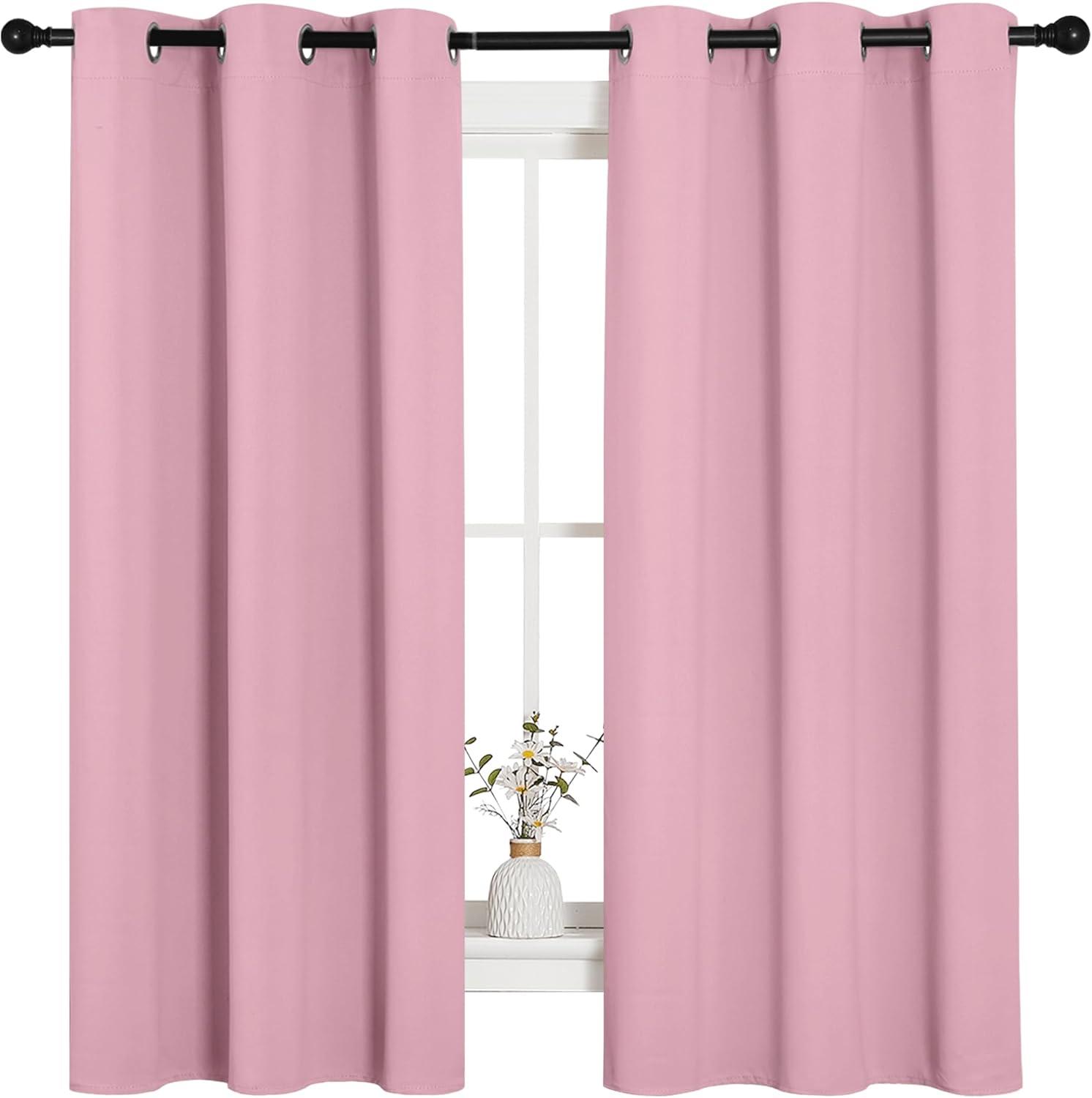NICETOWN Room Darkening Curtains 63" Long Set of 2 for Bedroom, Rouge Pink Nursery Essential Thermal Insulated Solid Grommet Top Blackout Curtains/Drapes (1 Pair, 42 inches Wide)
