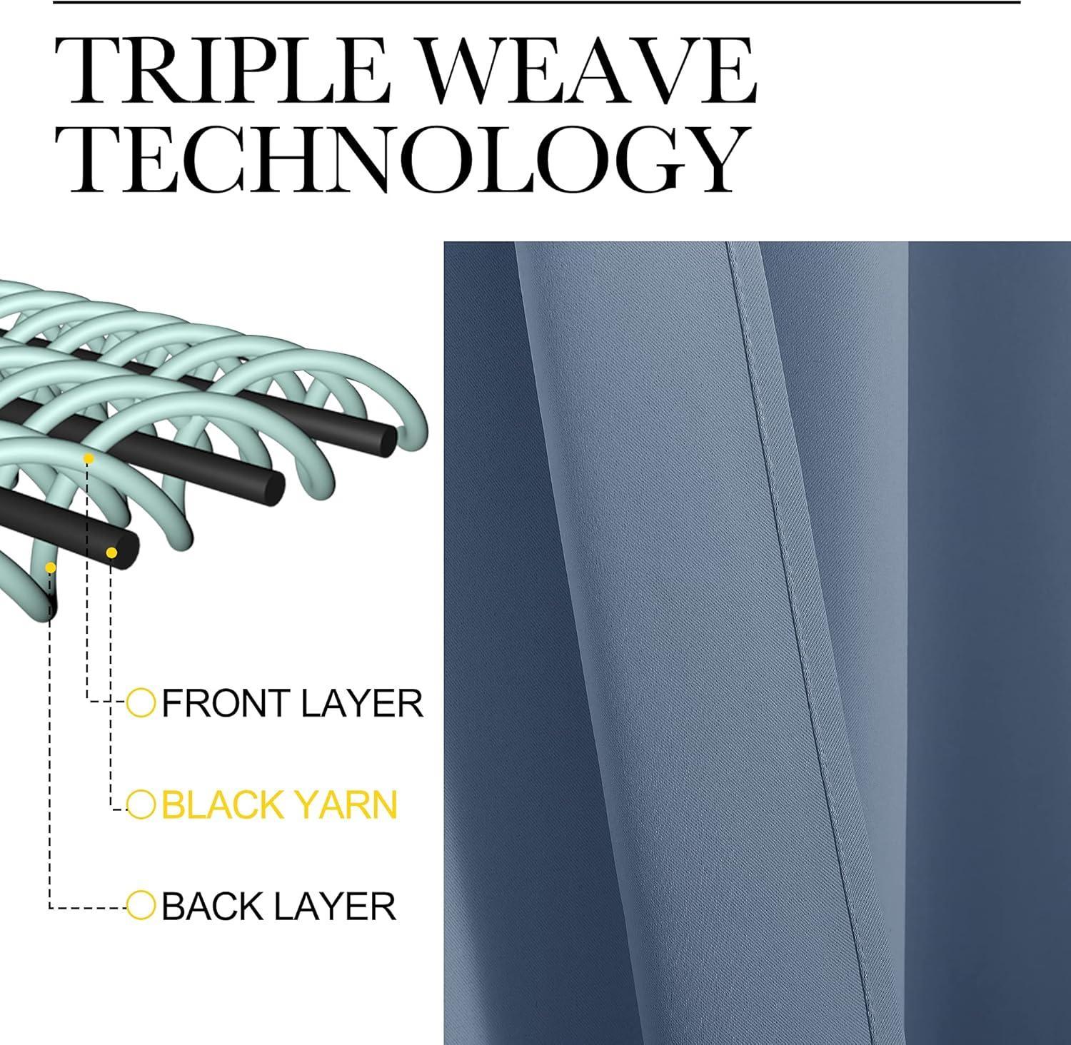 AMAZING MATERIAL: This unique, soft and heavy-duty blackout fabric is woven with three-layer construction. The middle layer of black yarns creates a curtain panel that is excellent for blocking out 85%-99% of light (Dark color works better on blocking light) while providing privacy.