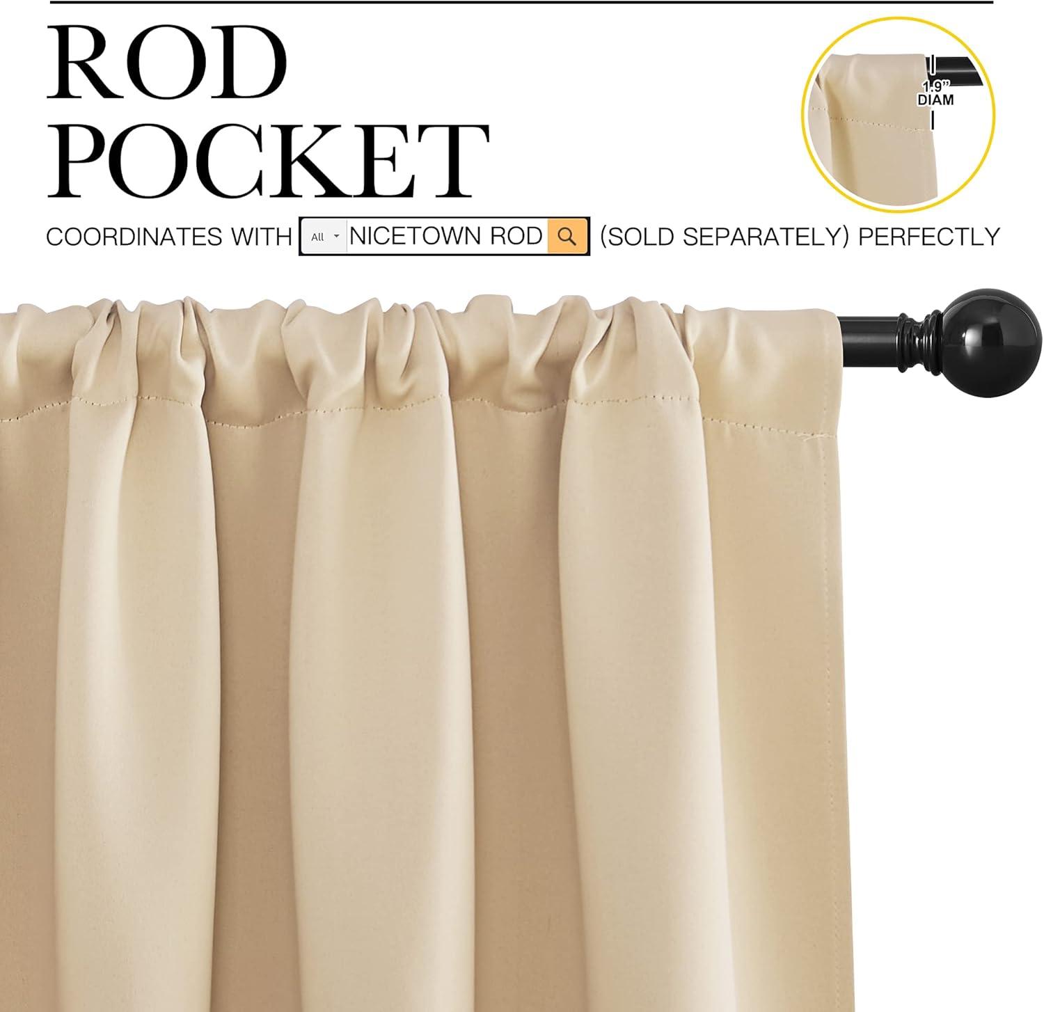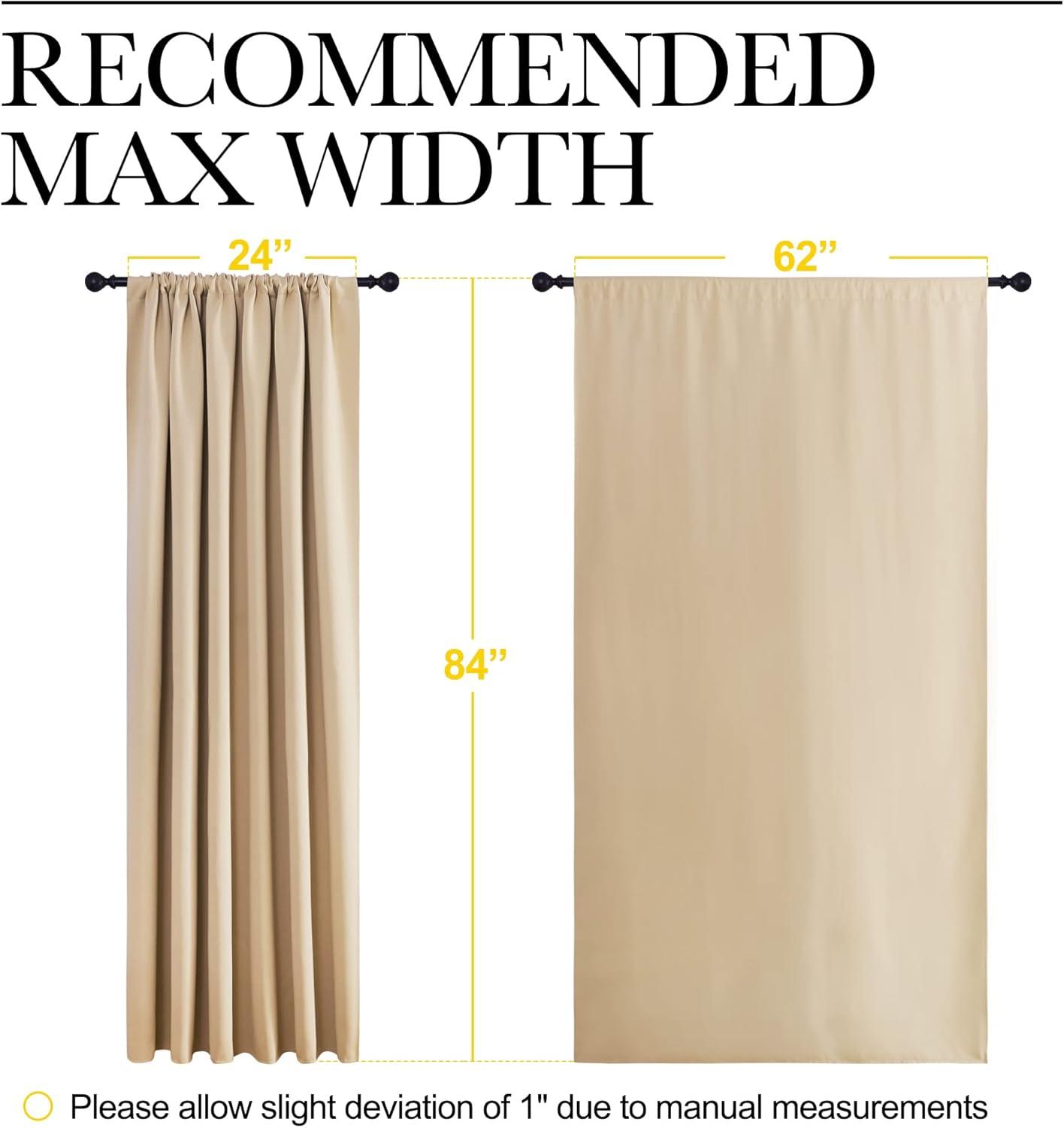 ELEGANT DESIGN: 2 panels per package. Each Blackout Curtain Panel measures 62 inches wide x 84 inches long. The NICETOWN drapery is constructed with rod pocket, fitting the curtain rod of your choice up to 2 inches in diameter, making the curtains easy to install and slide.