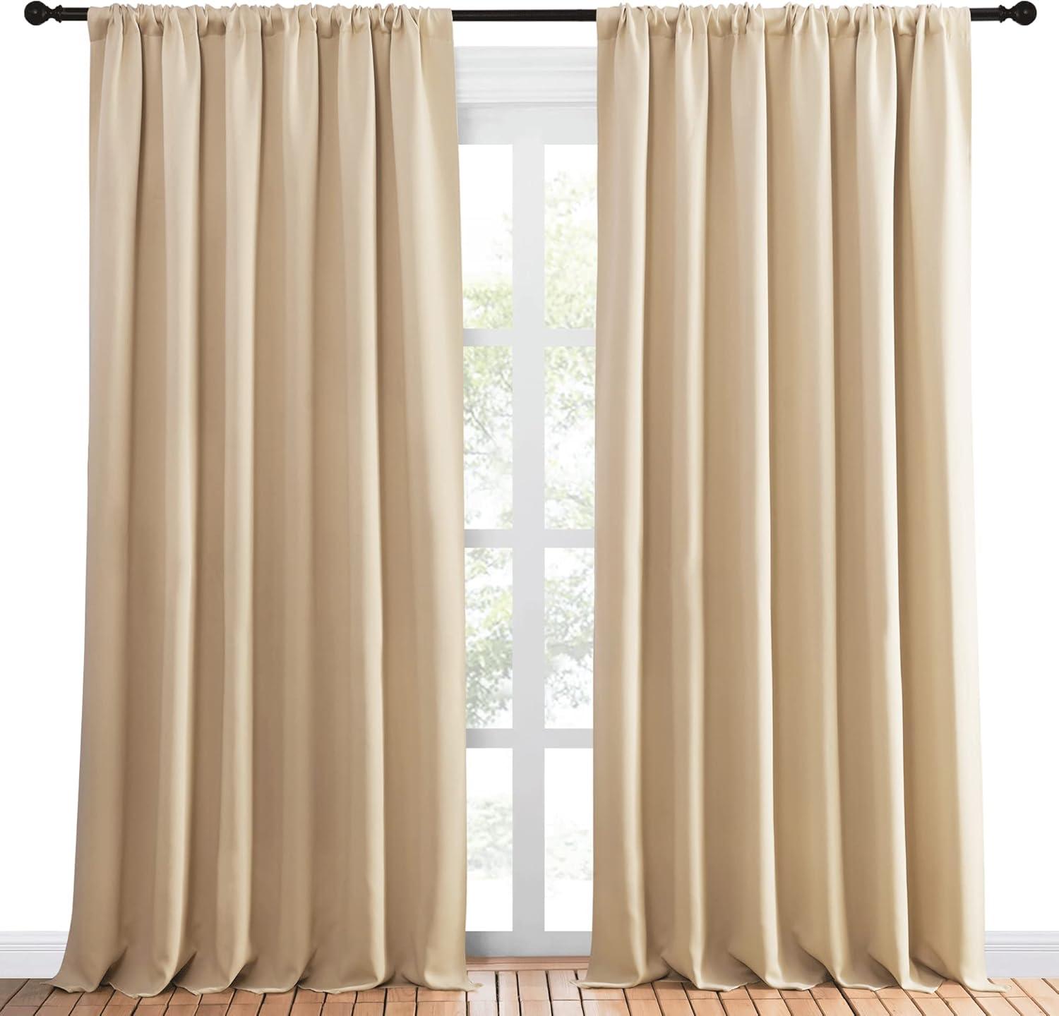 NICETOWN Room Darkening Curtains for Bedroom – Triple Weave Home Decoration Thermal Insulated Solid Drapes for Patio Door (Biscotti Beige, Set of 2 Panels, 70 x 95 Inch)