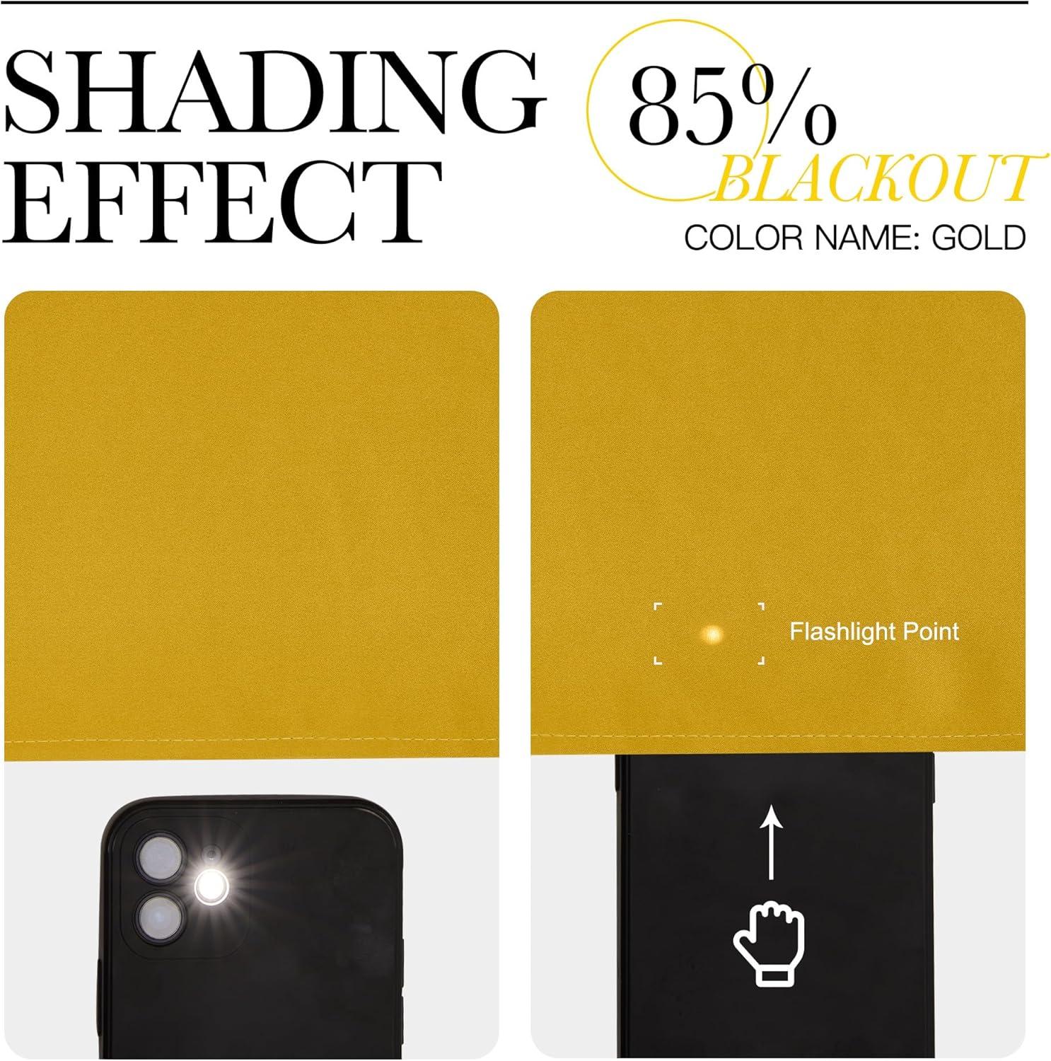 NICETOWN Room Darkening Gold Curtains 63 inch Length 2 Panels – Grommet Top Sound Reduction Privacy Faux Silk Satin Thermal Drapes for Bedroom/Living Room, W52 x L63