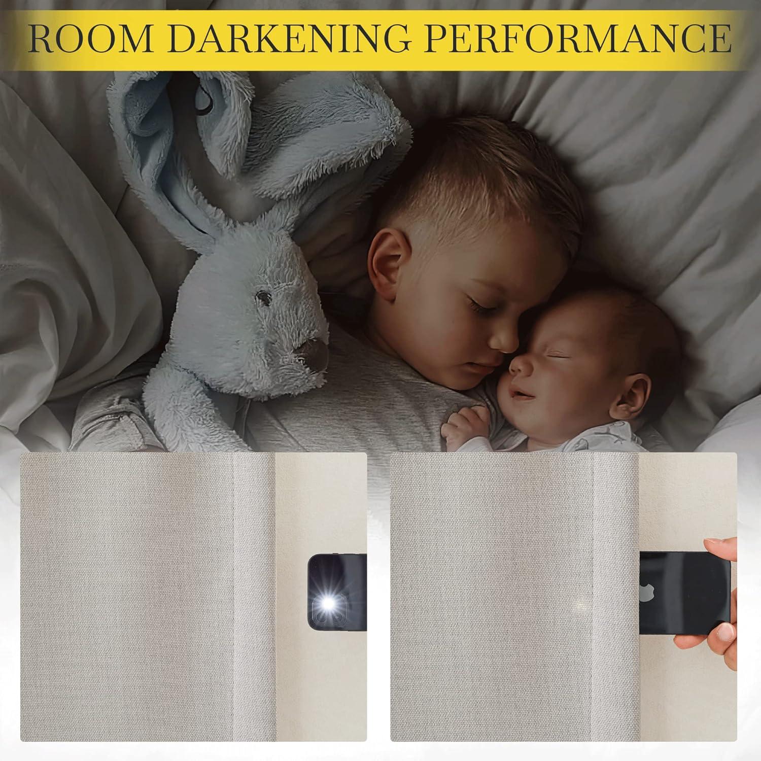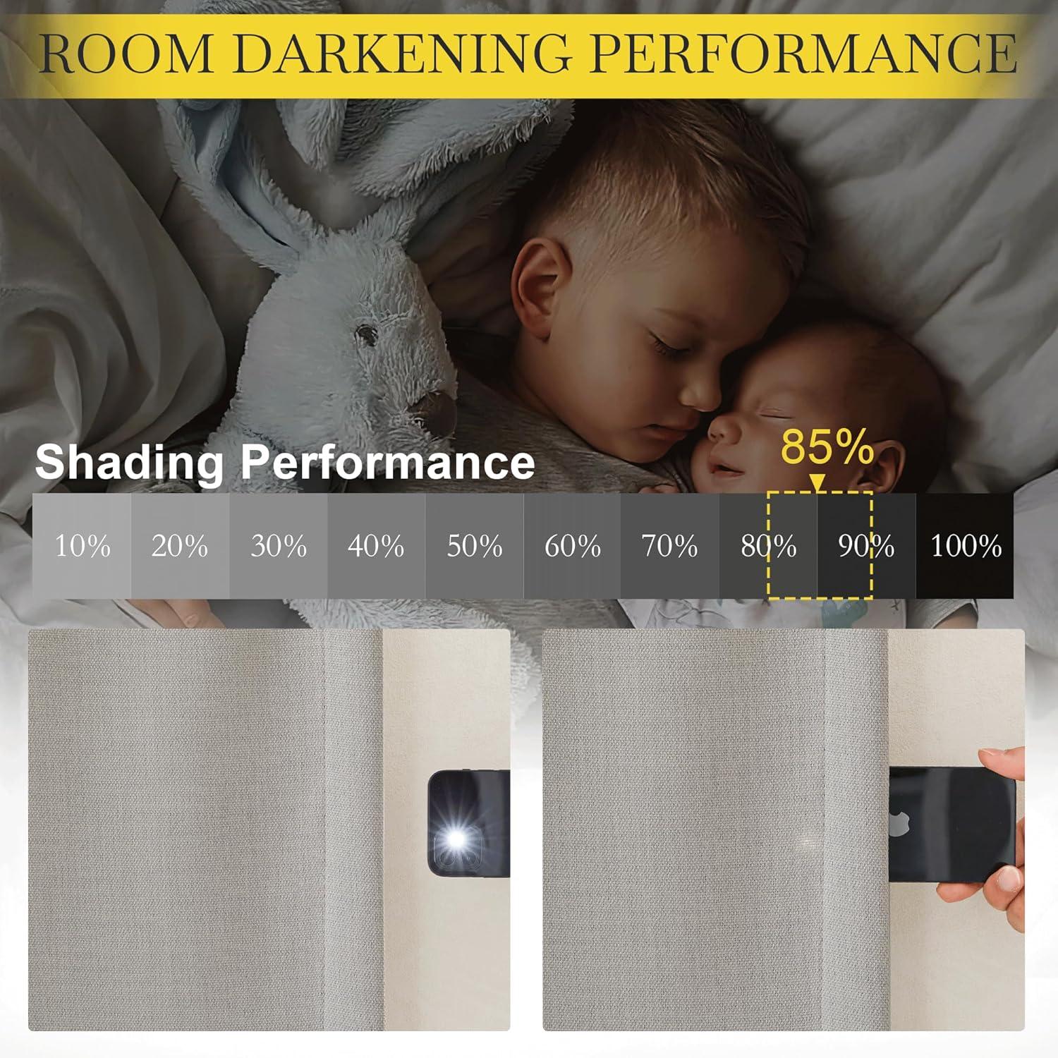 Light Blocking: The room darkening curtains with luxury faux linen textured will block most of the sunlight, heat, cold, and noise out with 100% privacy for your good sleep or rest even during the day.