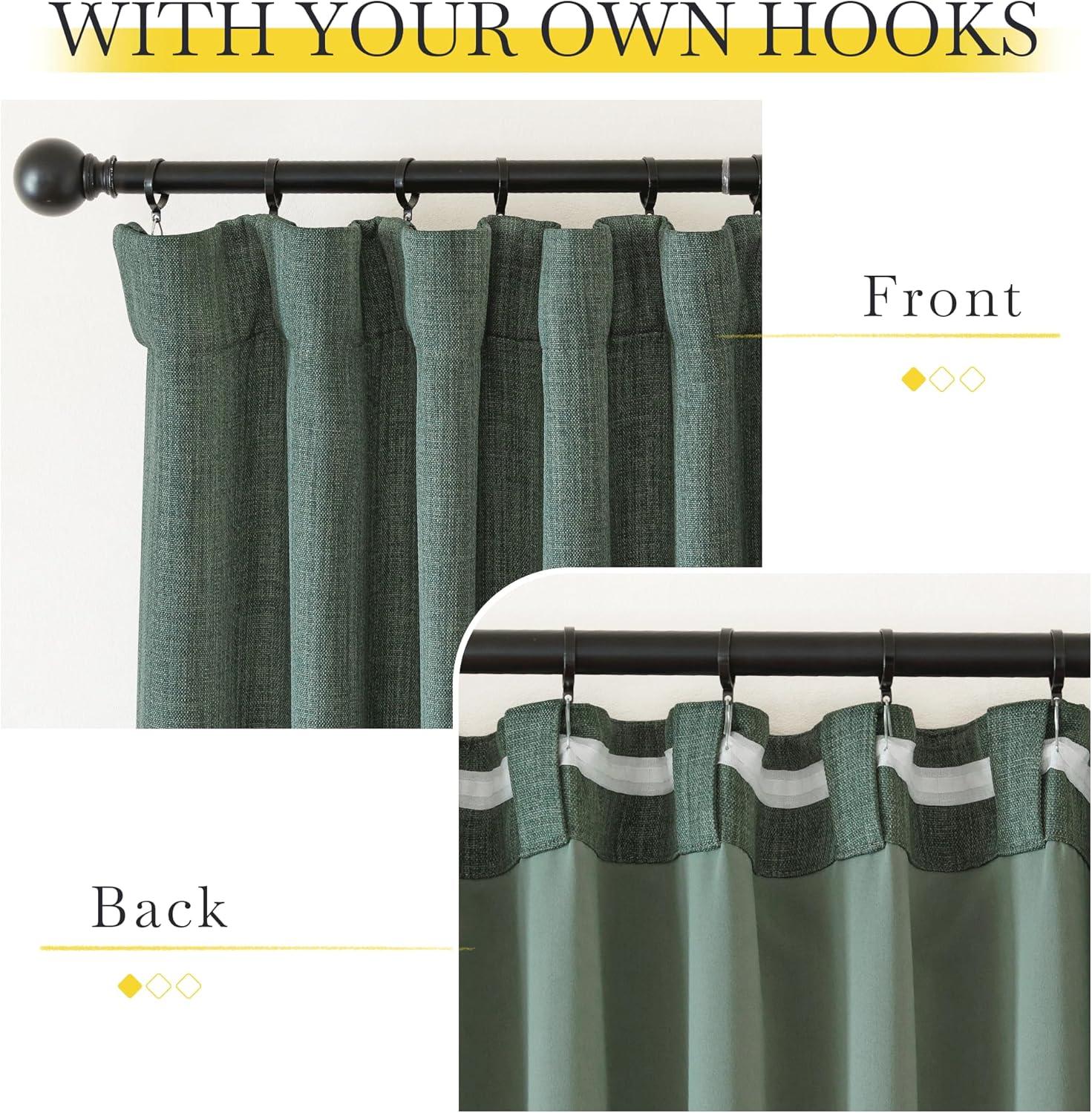 Hanging Options: You can hang your new drapes using the back tab, or rod pocket, or use small hooks on the hook belt to let them gently hang downward, then you will get elegant pinch pleated curtains.