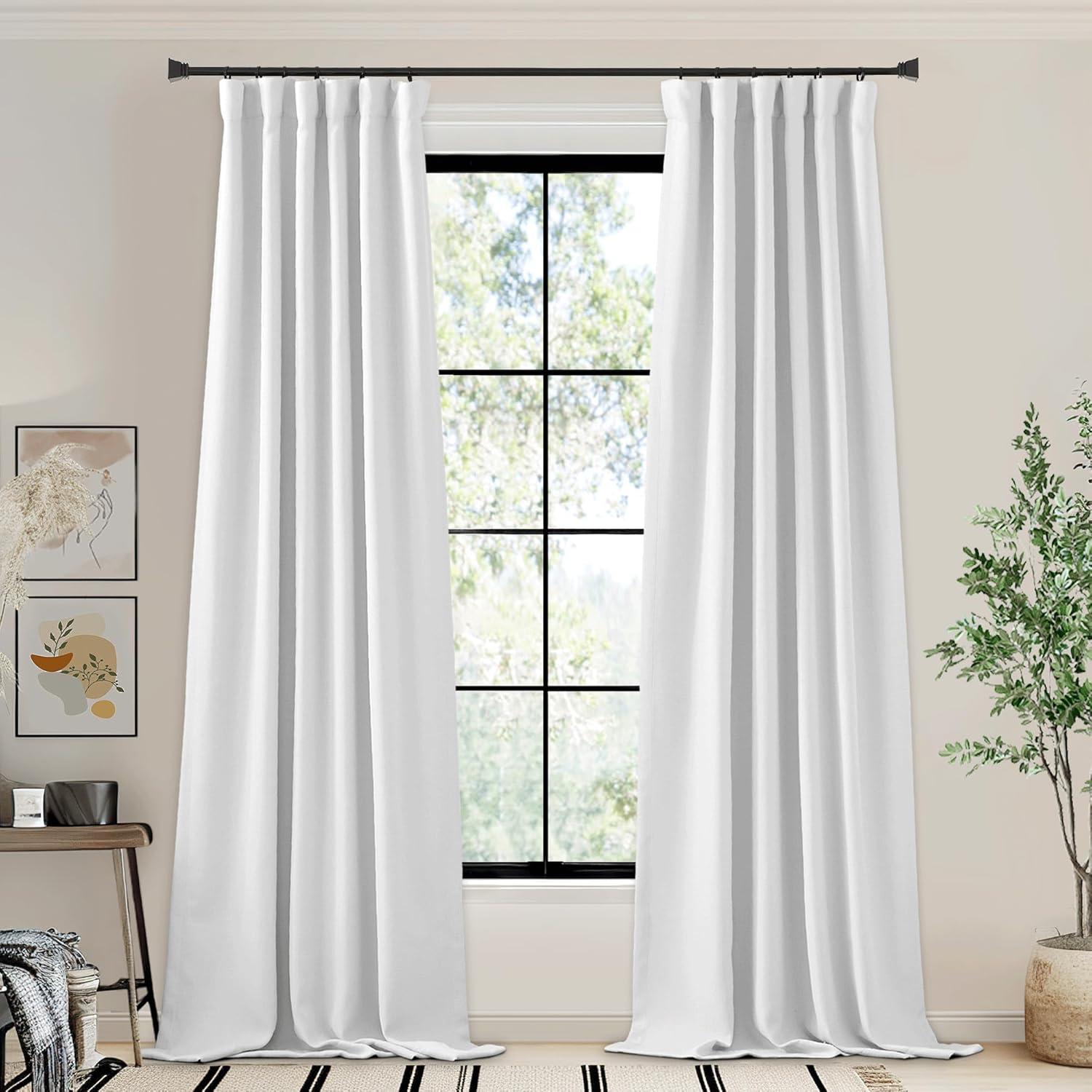 Hanging Options: You can hang your new drapes using the back tab, or rod pocket, or use small hooks on the hook belt to let them gently hang downward, then you will get elegant pinch pleated curtains.