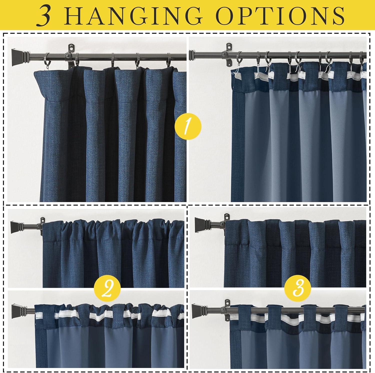 Hanging Options: You can hang your new drapes using the back tab, or rod pocket, or use small hooks on the hook belt to let them gently hang downward, then you will get elegant pinch pleated curtains.