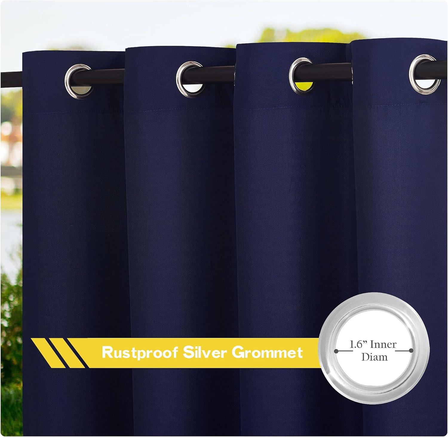 Ready Made: Sold as 1 panel. Crafted with advanced waterproof technology, ensuring durability against rain, wind, or shine. Features 1.6'' STAINLESS STEEL GROMMET for easy hanging. Both sides of the curtain are identical in material and color.