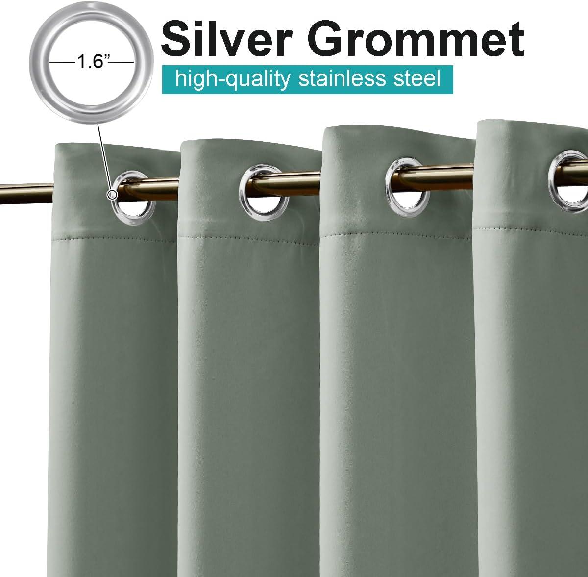 imageNICETOWN Room Darkning Bedroom Curtain W84 x L84 Stainless Steel Grommet Top Blackout Heavy Weight Window Treatment Thermal Insulated Sunlight Block Drape Panel for Sun RoomPorch TanSage Green