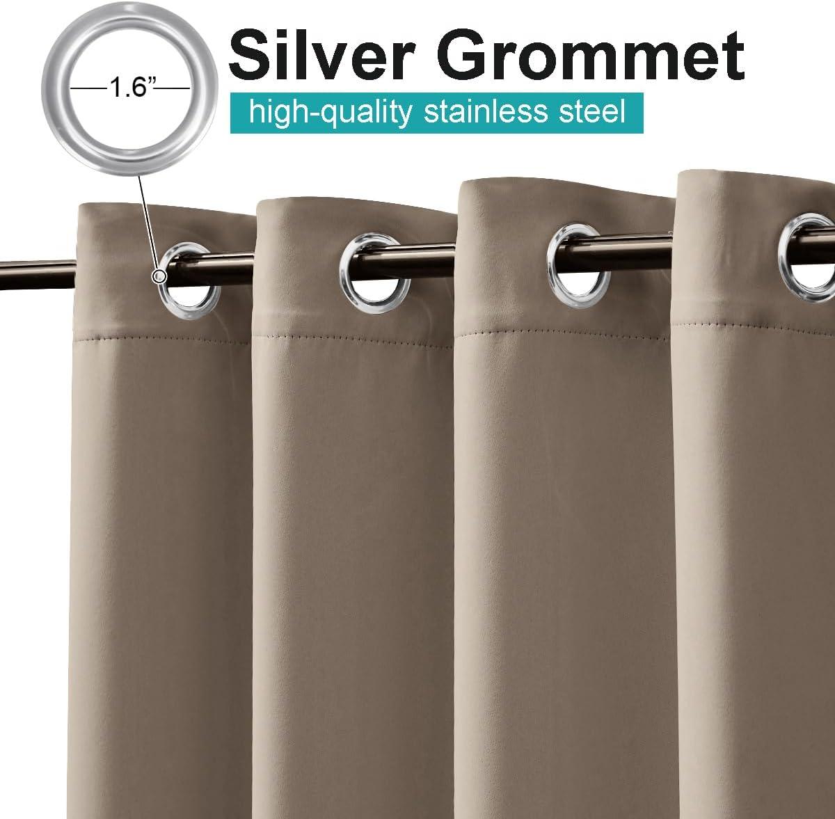imageNICETOWN Room Darkning Bedroom Curtain W84 x L84 Stainless Steel Grommet Top Blackout Heavy Weight Window Treatment Thermal Insulated Sunlight Block Drape Panel for Sun RoomPorch TanSoft Brown