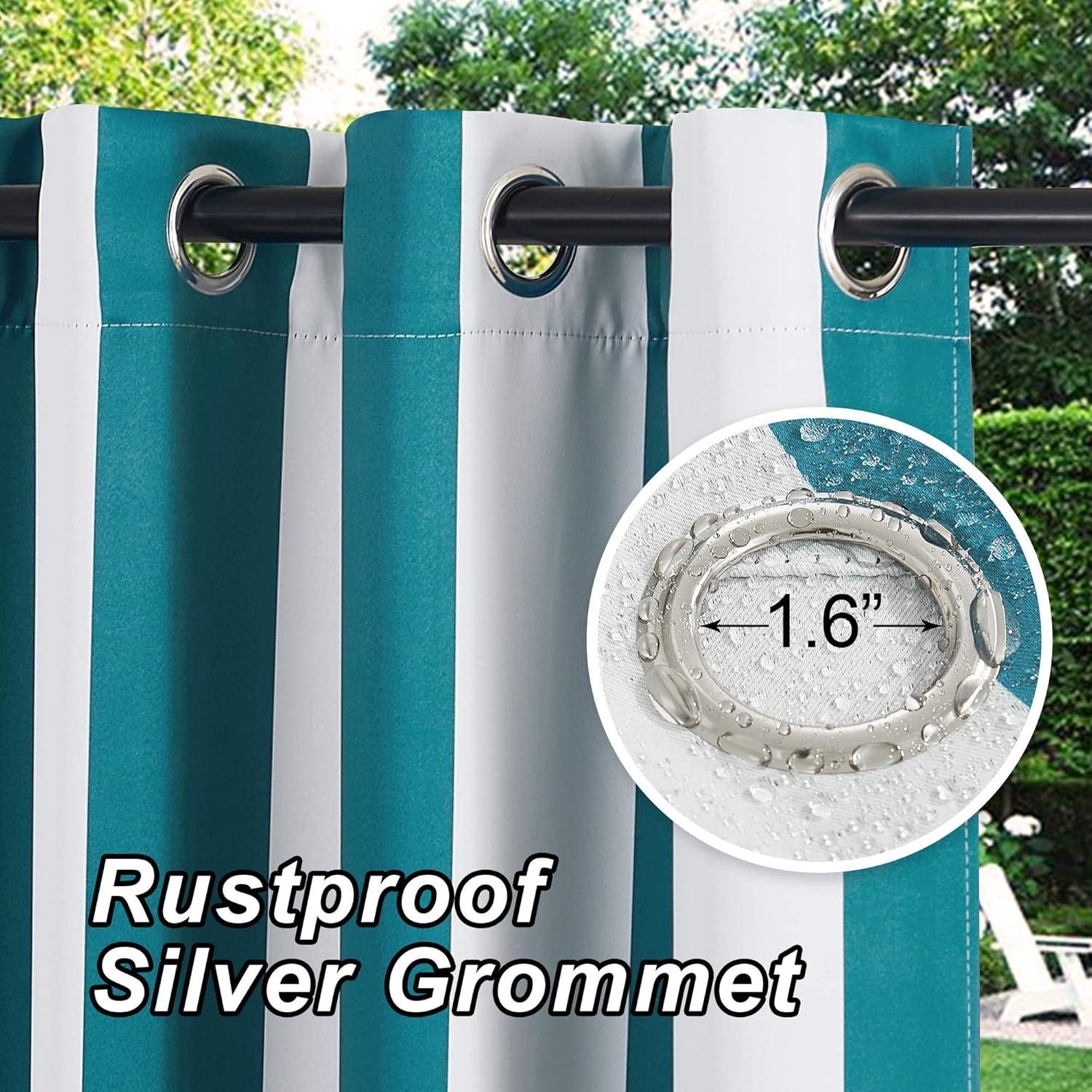 Ready Made: Sold as 1 panel. Crafted with advanced waterproof technology, ensuring durability against rain, wind, or shine. Features 1.6'' STAINLESS STEEL GROMMET for easy hanging. Both sides of the curtain are identical in material and color.