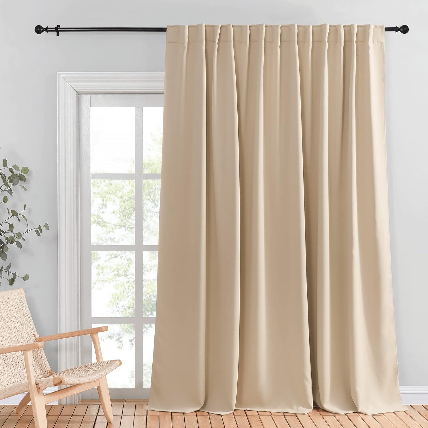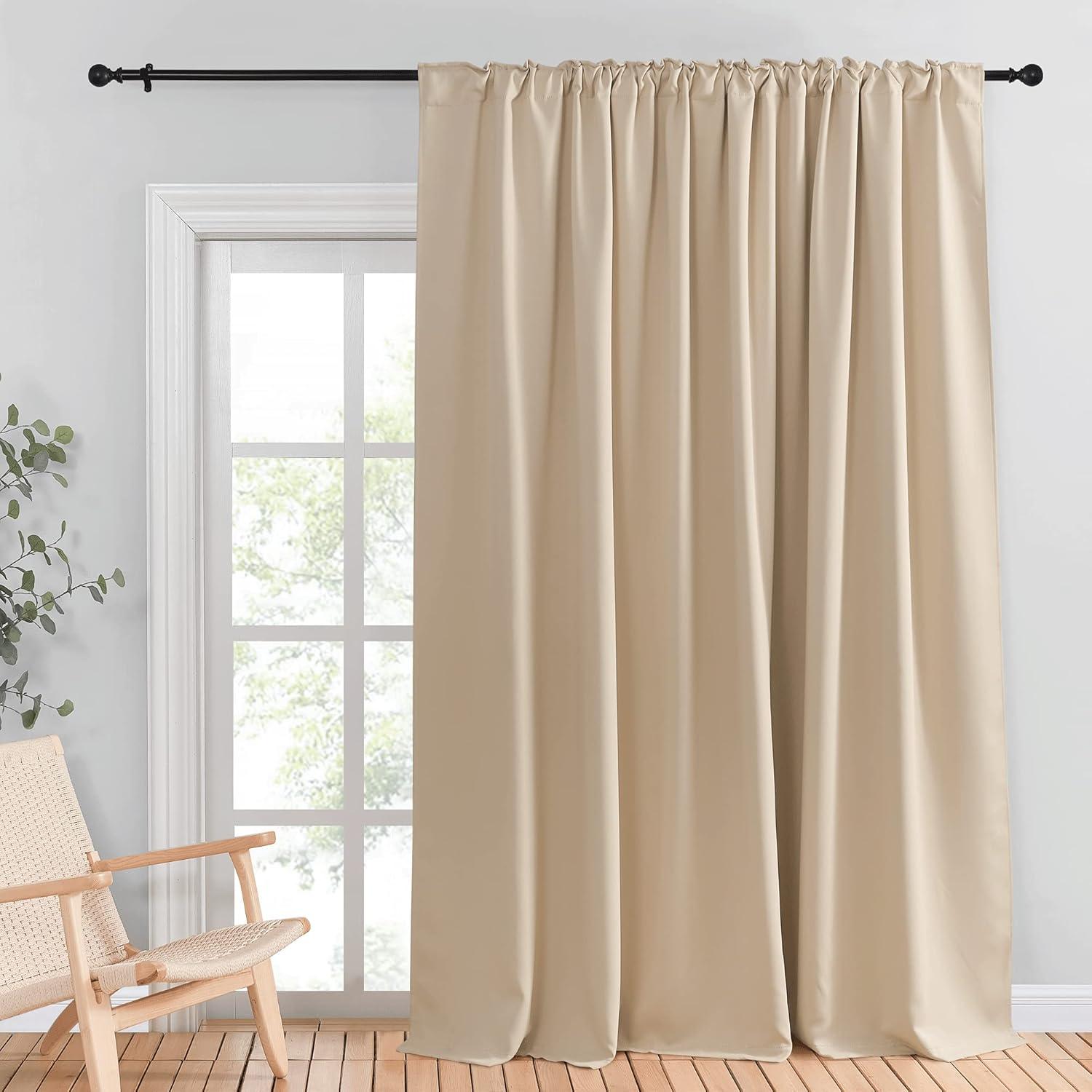 NICE FABRIC: The blackout curtain's fabric is super soft and heavily innovative triple-weave polyester fabric. Suitable perfectly for sliding door, patio door, and any large window. These wide curtains can be hung separately, or combine with NICETOWN sheer curtains.