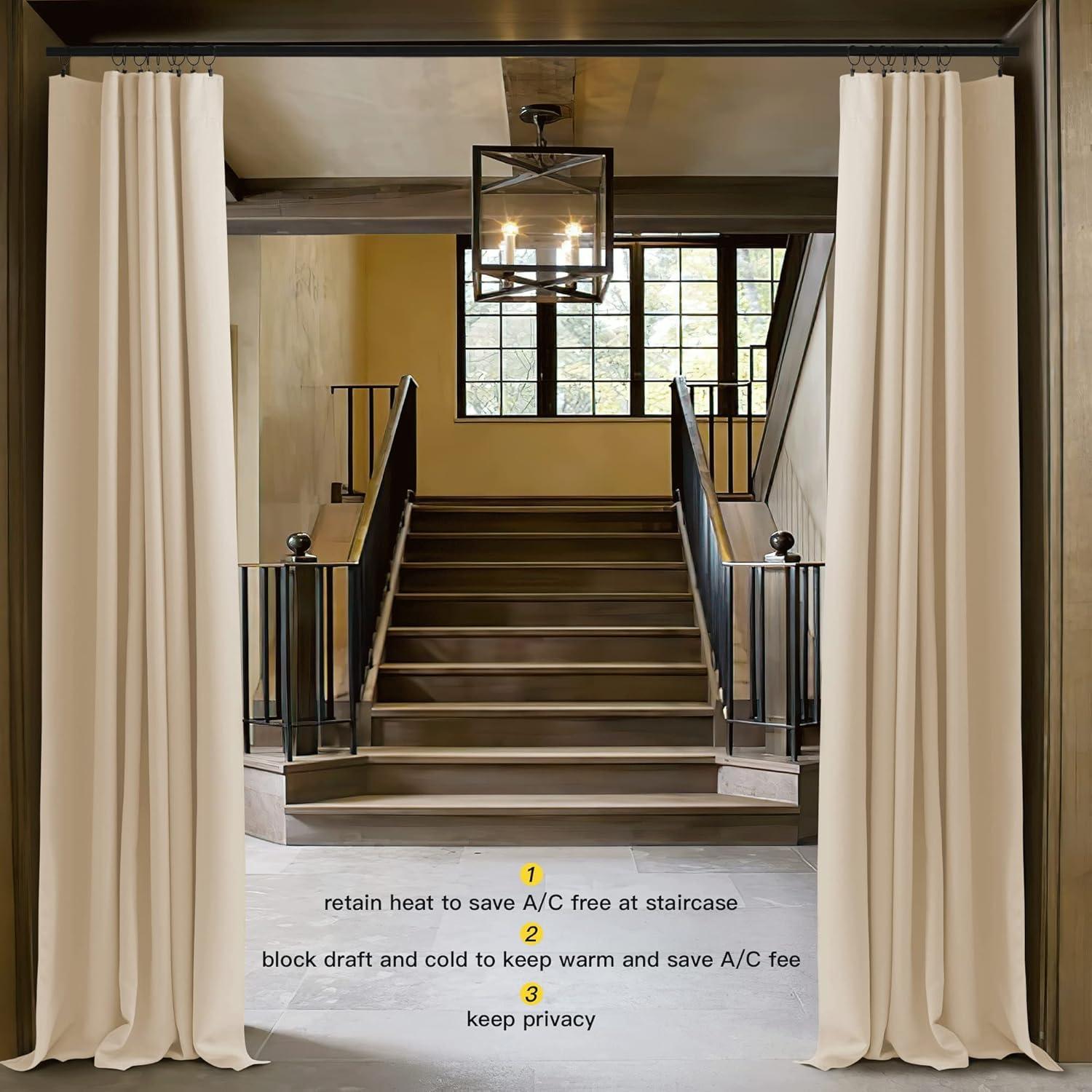 MULTIPLE FUNCTIONAL: These blackout curtains are wide enough to cover the sliding door perfectly. Besides, the curtain panel helps your patio door to block out most of the light and UV rays, high performance on thermal insulated, noise reducing and privacy-protecting.
