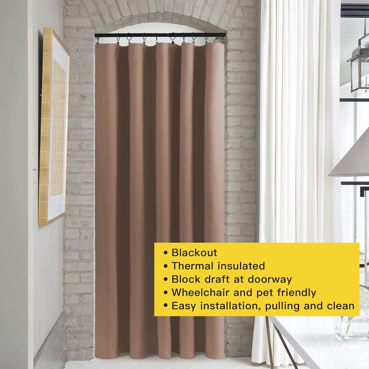 imageNICETOWN Room Darkning Blinds for Patio Door Sliding Door Insulated Blackout Curtains Extra Wide Curtain for VillaHallParlor Cappuccino 70 inches W x 84 inches L Single PanelCappuccino