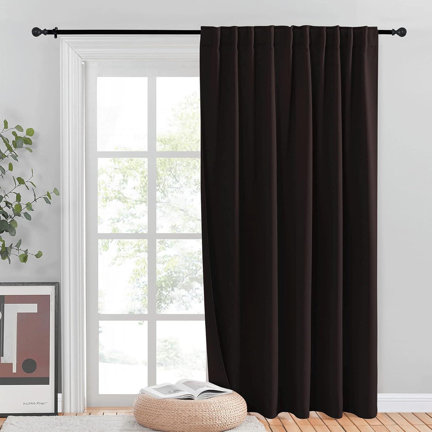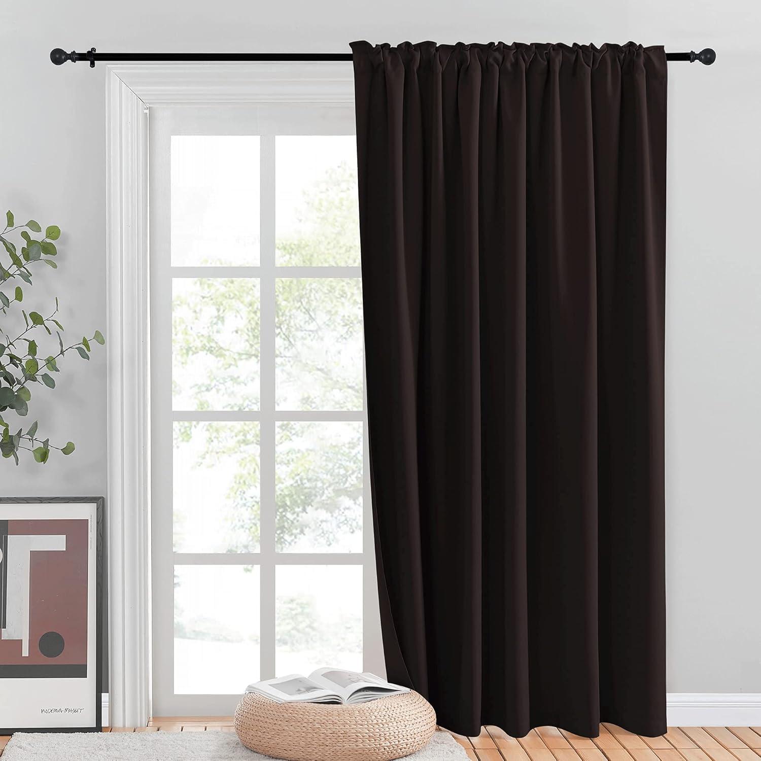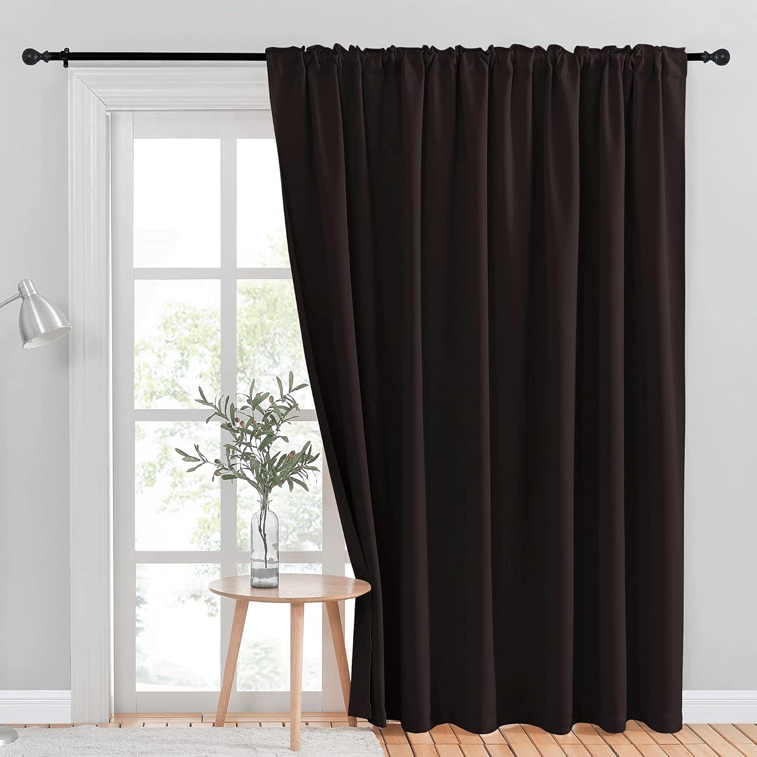 NICETOWN Room Darkning Blinds for Patio Door, Sliding Door Insulated Blackout Curtains, Extra Wide Curtain for Villa/Hall/Parlor (Cappuccino, 70 inches W x 84 inches L, Single Panel)(Toffee Brown)