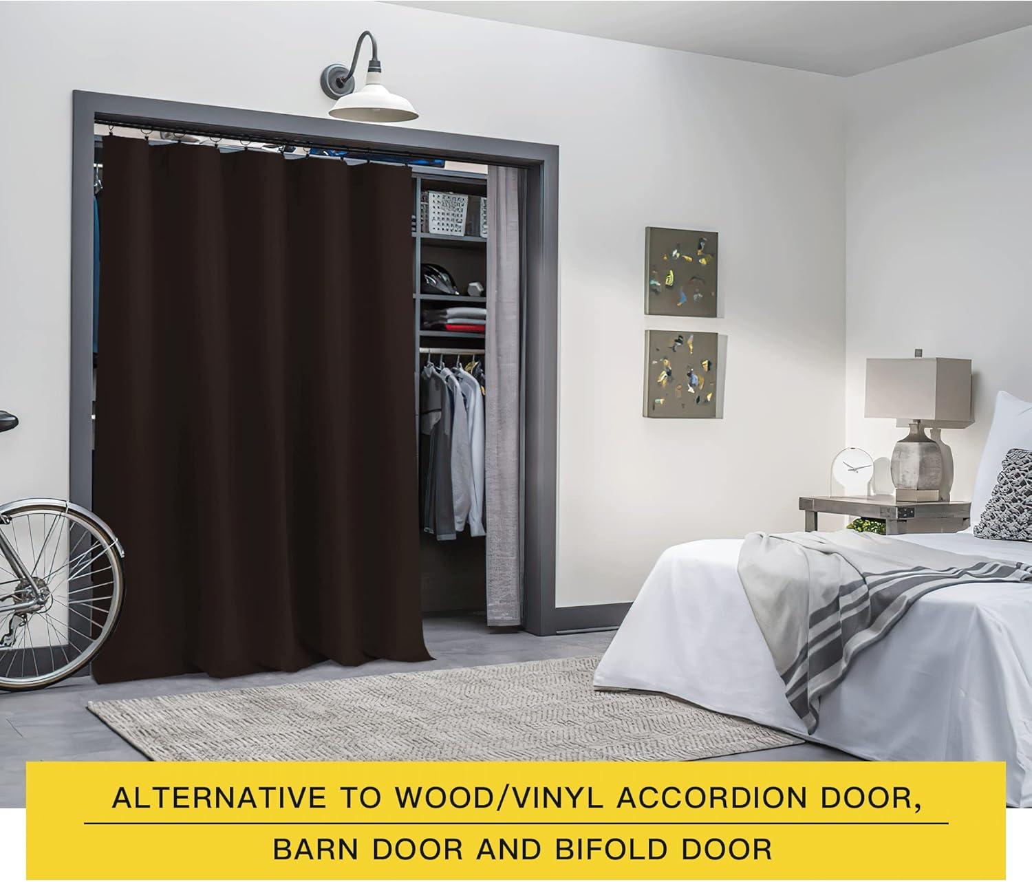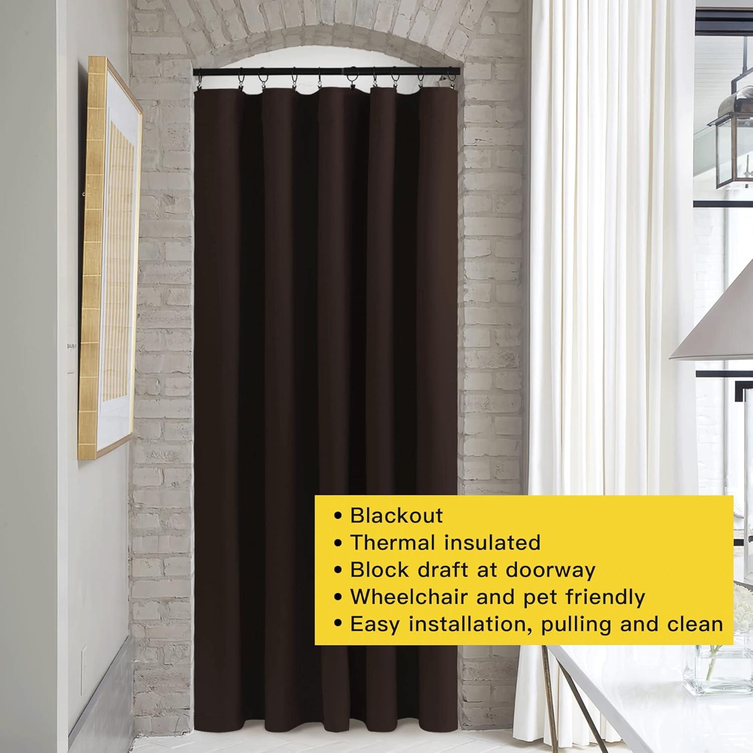 imageNICETOWN Room Darkning Blinds for Patio Door Sliding Door Insulated Blackout Curtains Extra Wide Curtain for VillaHallParlor Cappuccino 70 inches W x 84 inches L Single PanelToffee Brown