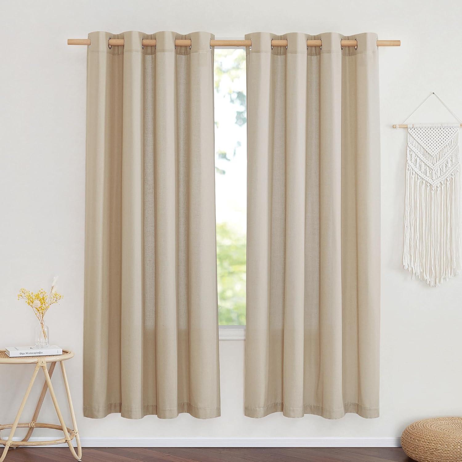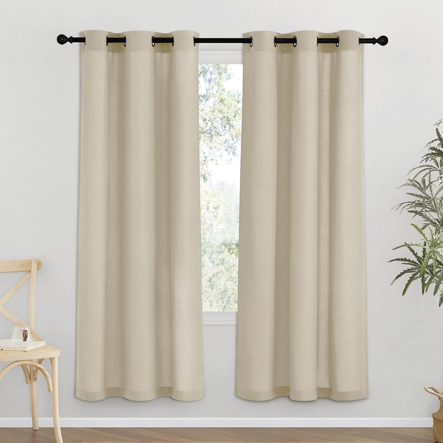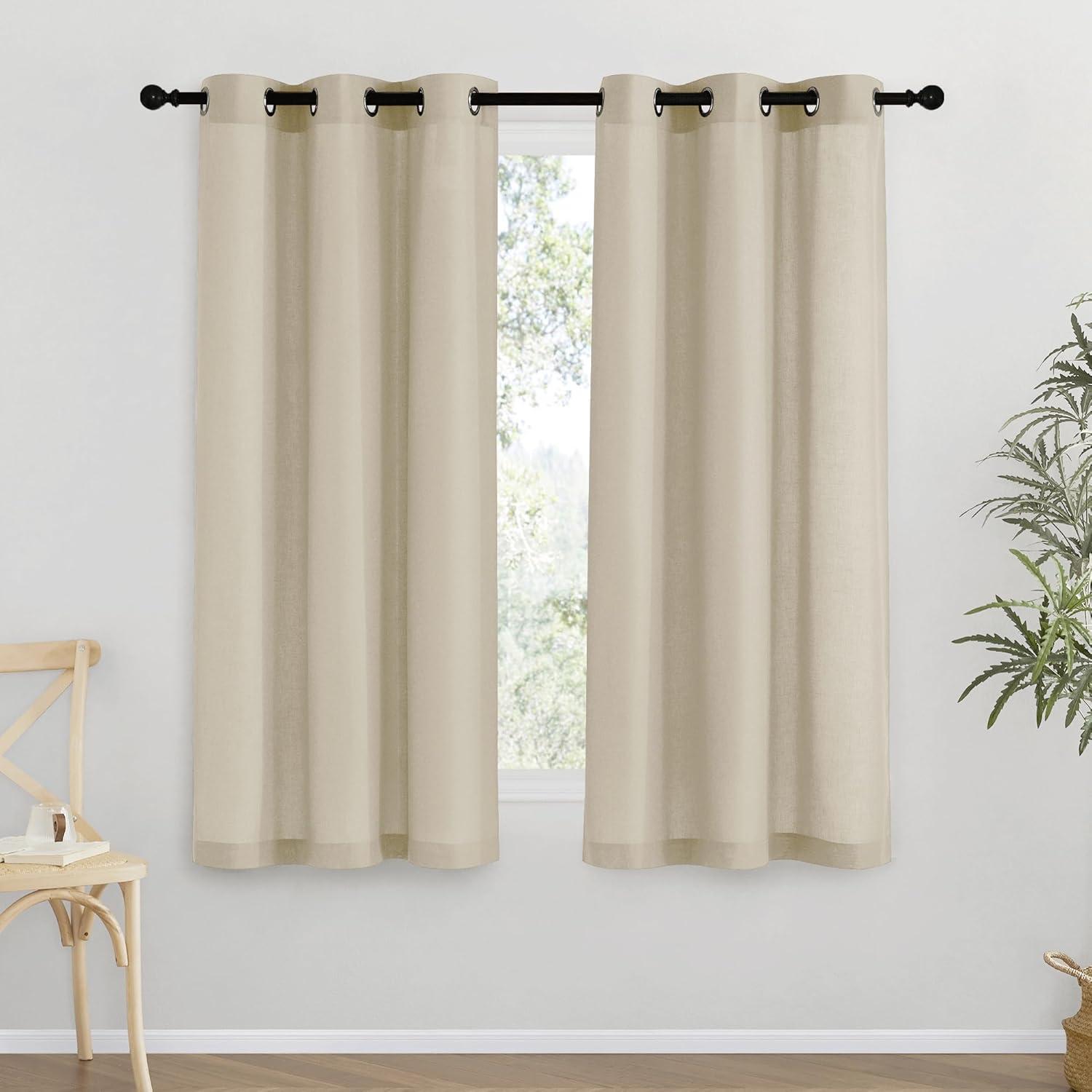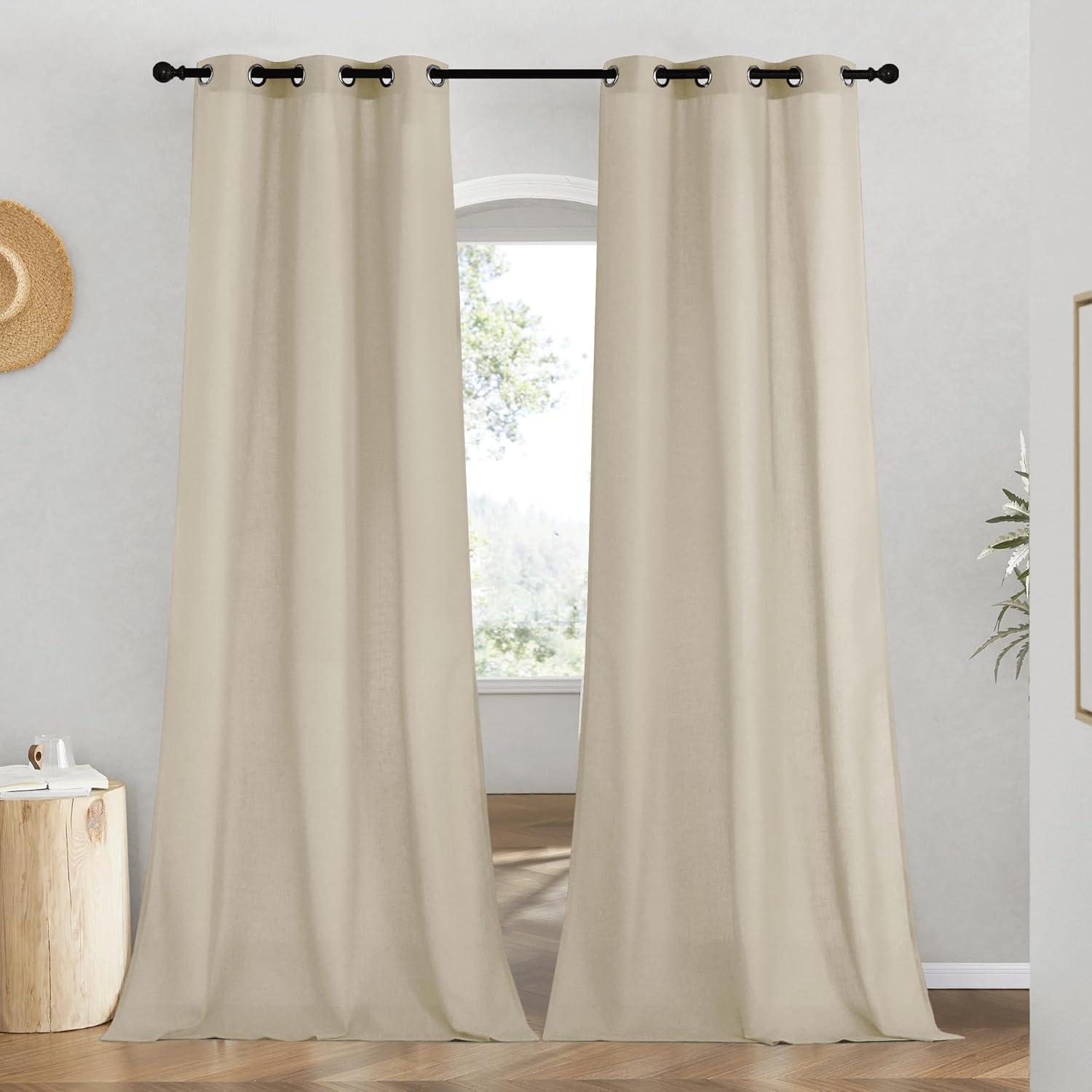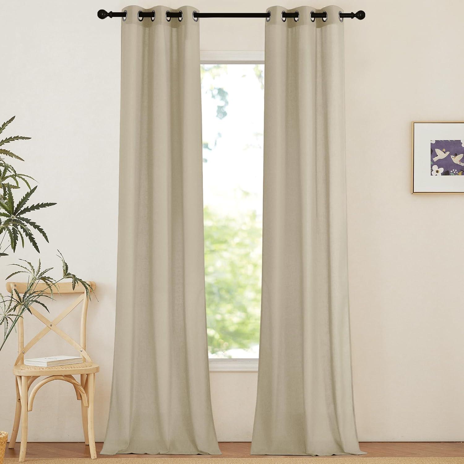 Ready-Made: The package includes 2 panels of thick flax semi-sheer linen curtains, and each measures 55″W (110″W for pair), with 8 (1.6″ inner diameter) silver grommets to suit both your standard and decorative curtain rod.