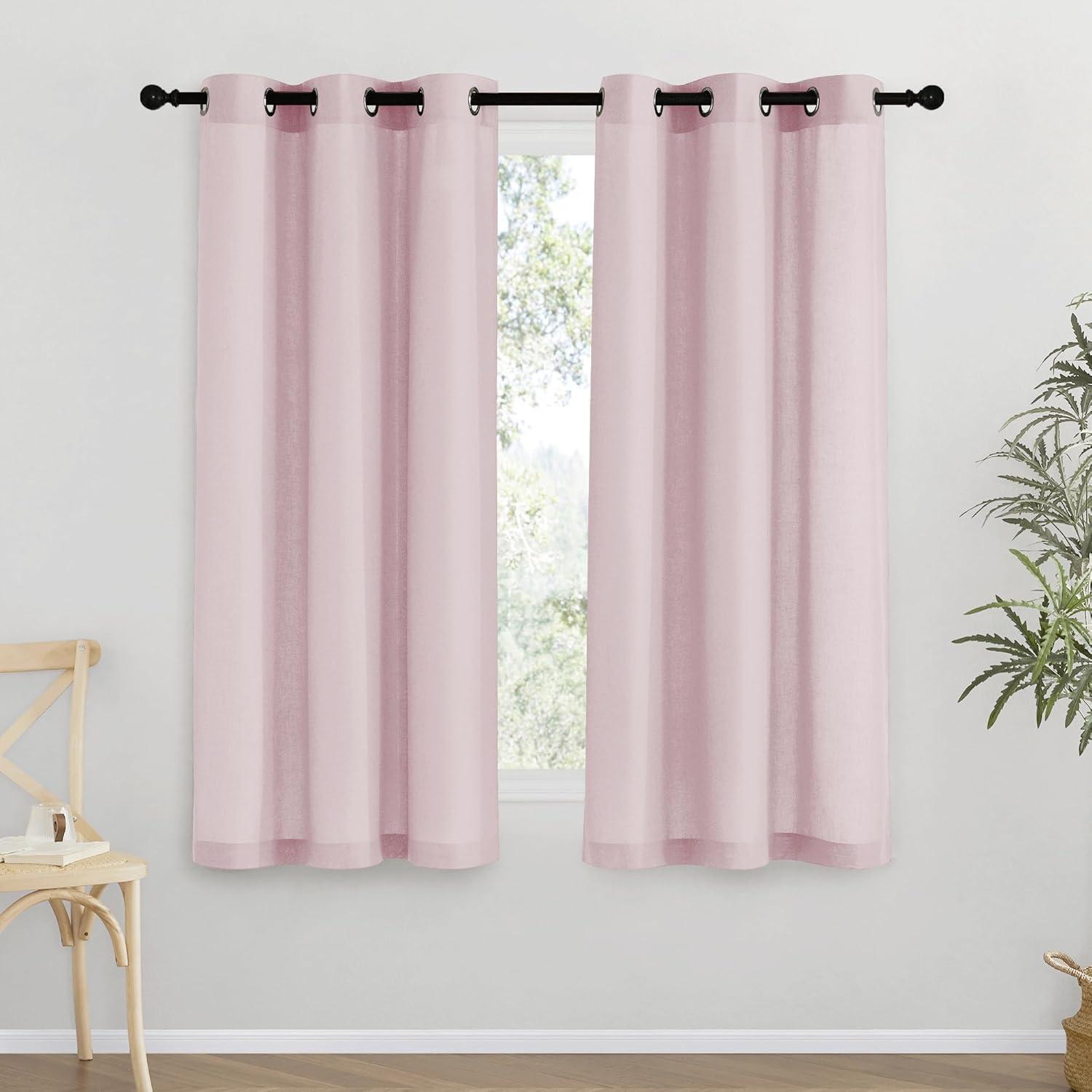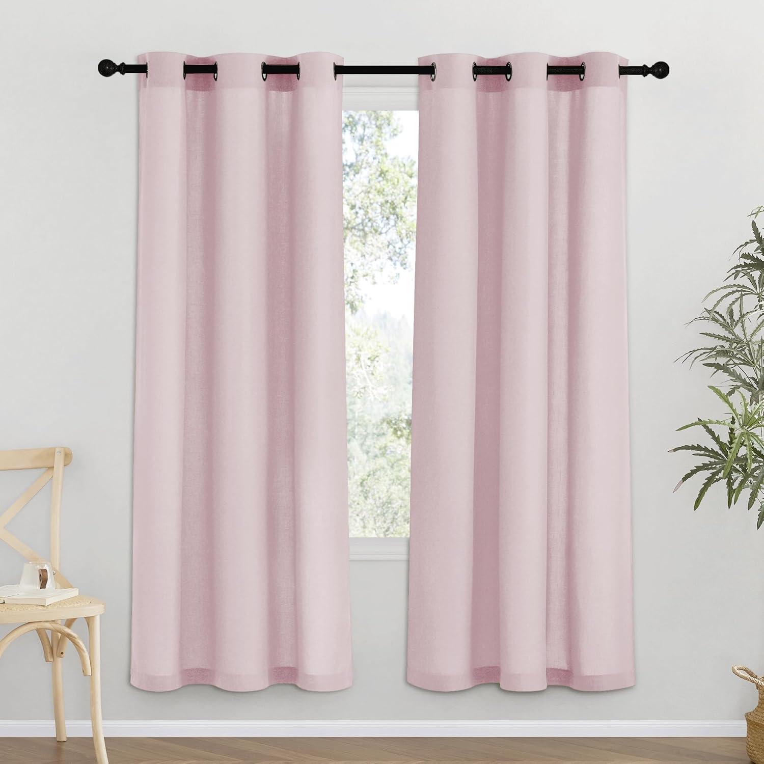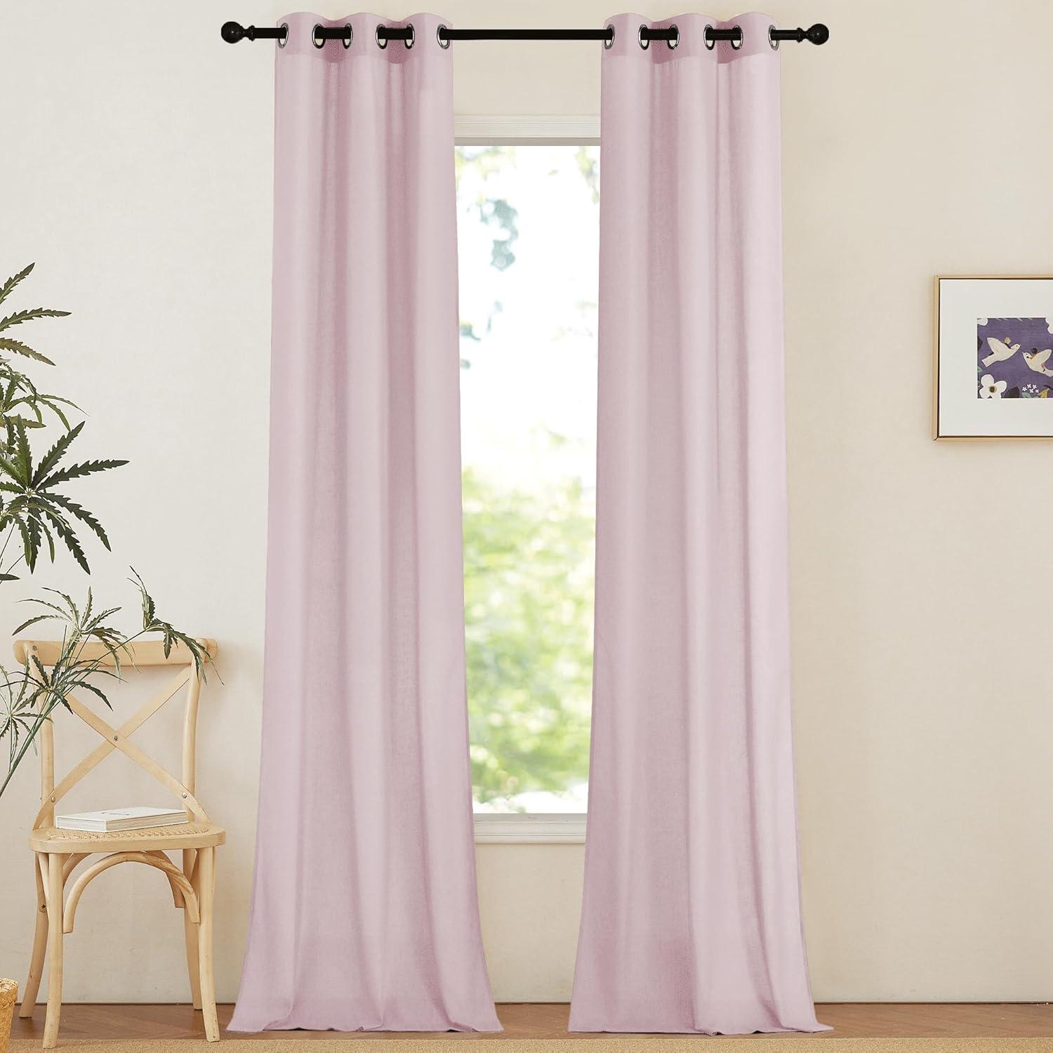 NICETOWN Rustic Linen 102 inch Long Curtains for Living Room, Grommet Privacy Added Thick Linen Weave with Light Filter Window Curtains & Drapes for Bedroom, Olive Green, W55 x L102, 2 Panels(Blush Pink)