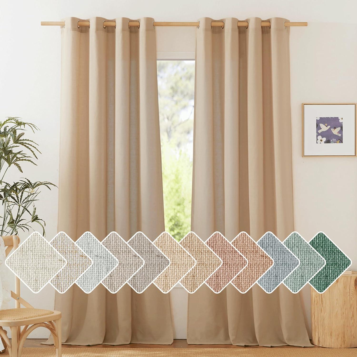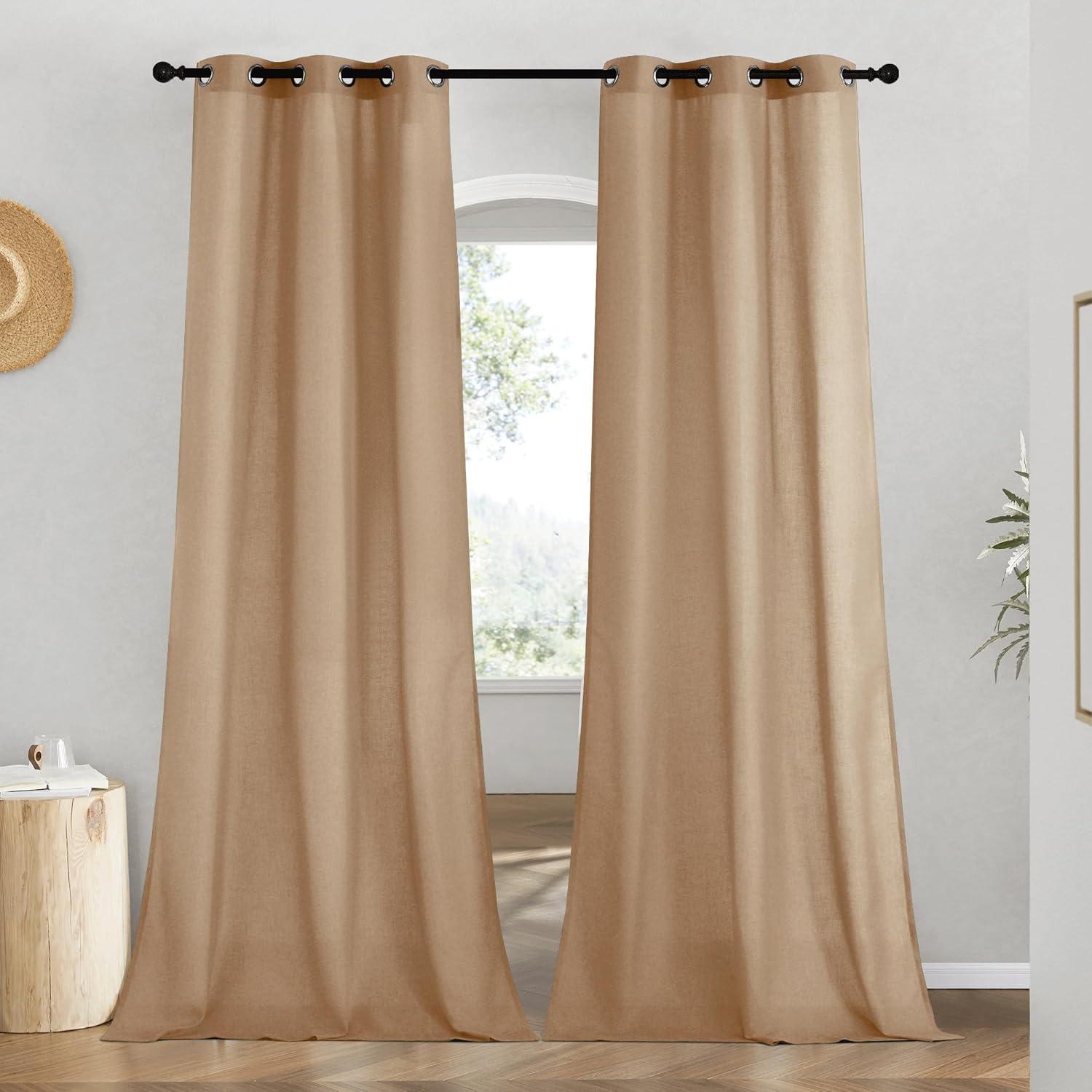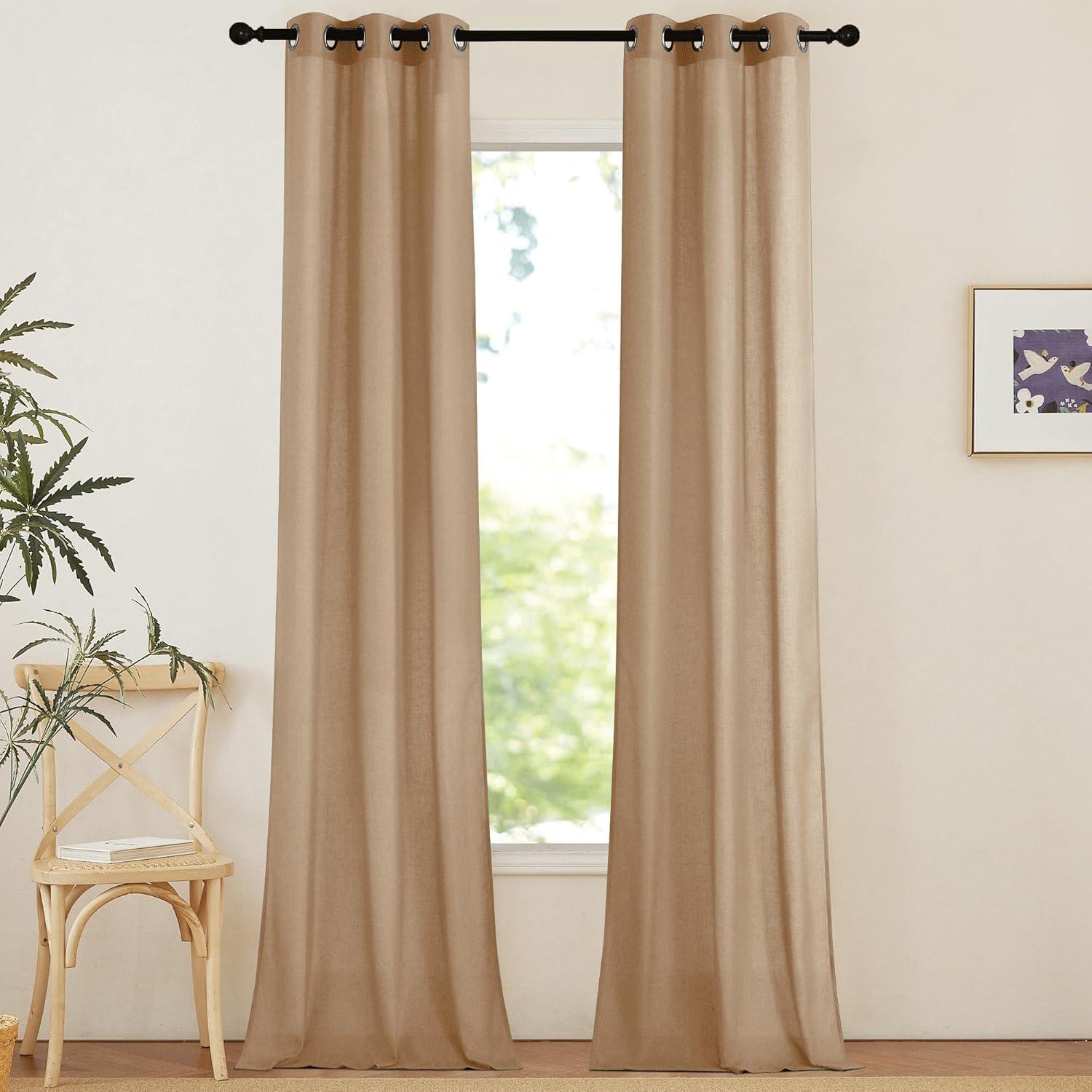 Ready-Made: The package includes 2 panels of thick flax semi-sheer linen curtains, and each measures 55″W (110″W for pair), with 8 (1.6″ inner diameter) silver grommets to suit both your standard and decorative curtain rod.