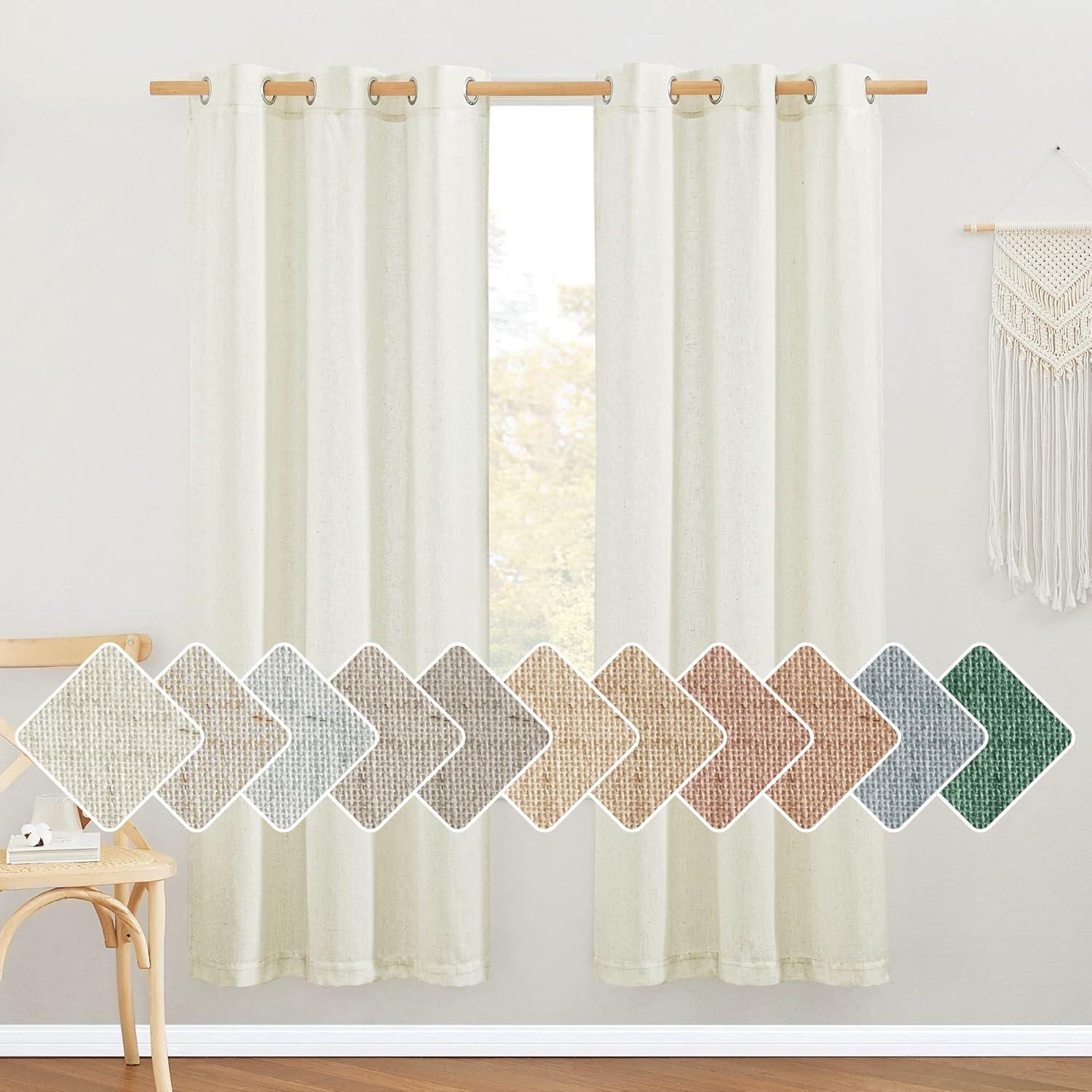 Ready-Made: The package includes 2 panels of thick flax semi-sheer linen curtains, and each measures 55″W (110″W for pair), with 8 (1.6″ inner diameter) silver grommets to suit both your standard and decorative curtain rod.