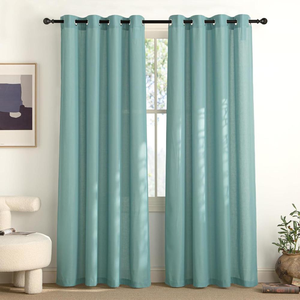 Ready-Made: The package includes 2 panels of thick flax semi-sheer linen curtains, and each measures 55″W (110″W for pair), with 8 (1.6″ inner diameter) silver grommets to suit both your standard and decorative curtain rod.