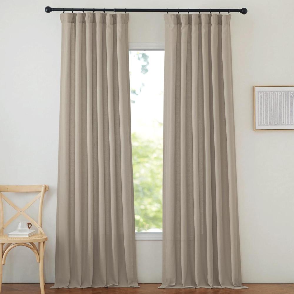 NICETOWN Rustic Linen 102 inch Long Curtains for Living Room, Grommet Privacy Added Thick Linen Weave with Light Filter Window Curtains & Drapes for Bedroom, Olive Green, W55 x L102, 2 Panels(Hook Belt| Taupe)