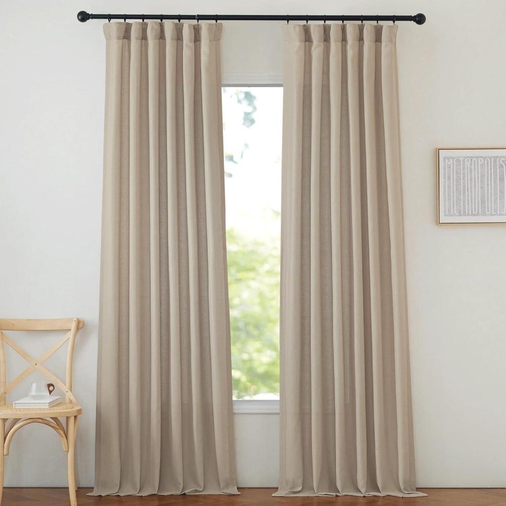NICETOWN Rustic Linen 102 inch Long Curtains for Living Room, Grommet Privacy Added Thick Linen Weave with Light Filter Window Curtains & Drapes for Bedroom, Olive Green, W55 x L102, 2 Panels(Hook Belt| Natural)