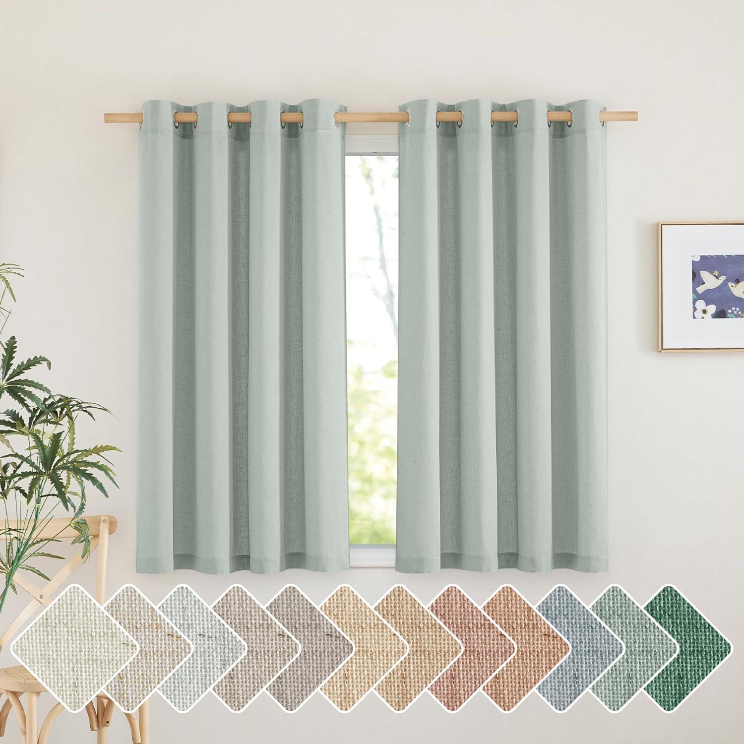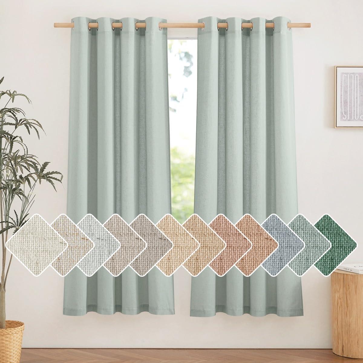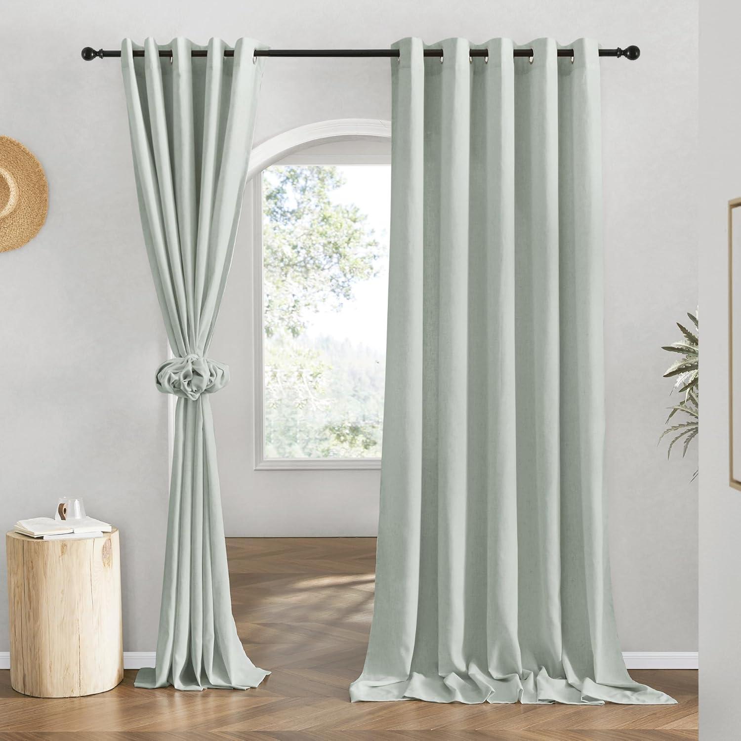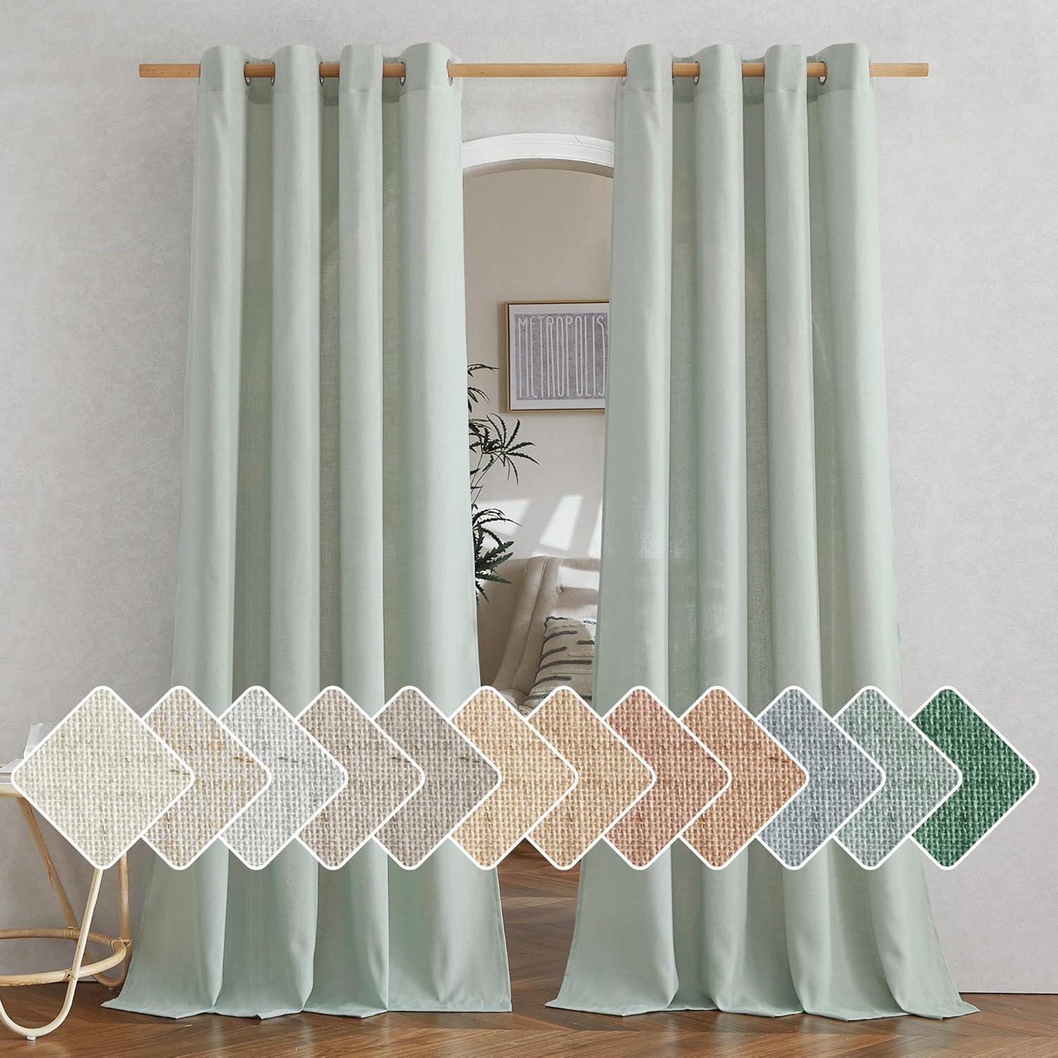 NICETOWN Rustic Linen 102 inch Long Curtains for Living Room, Grommet Privacy Added Thick Linen Weave with Light Filter Window Curtains & Drapes for Bedroom, Olive Green, W55 x L102, 2 Panels(Sage Green)