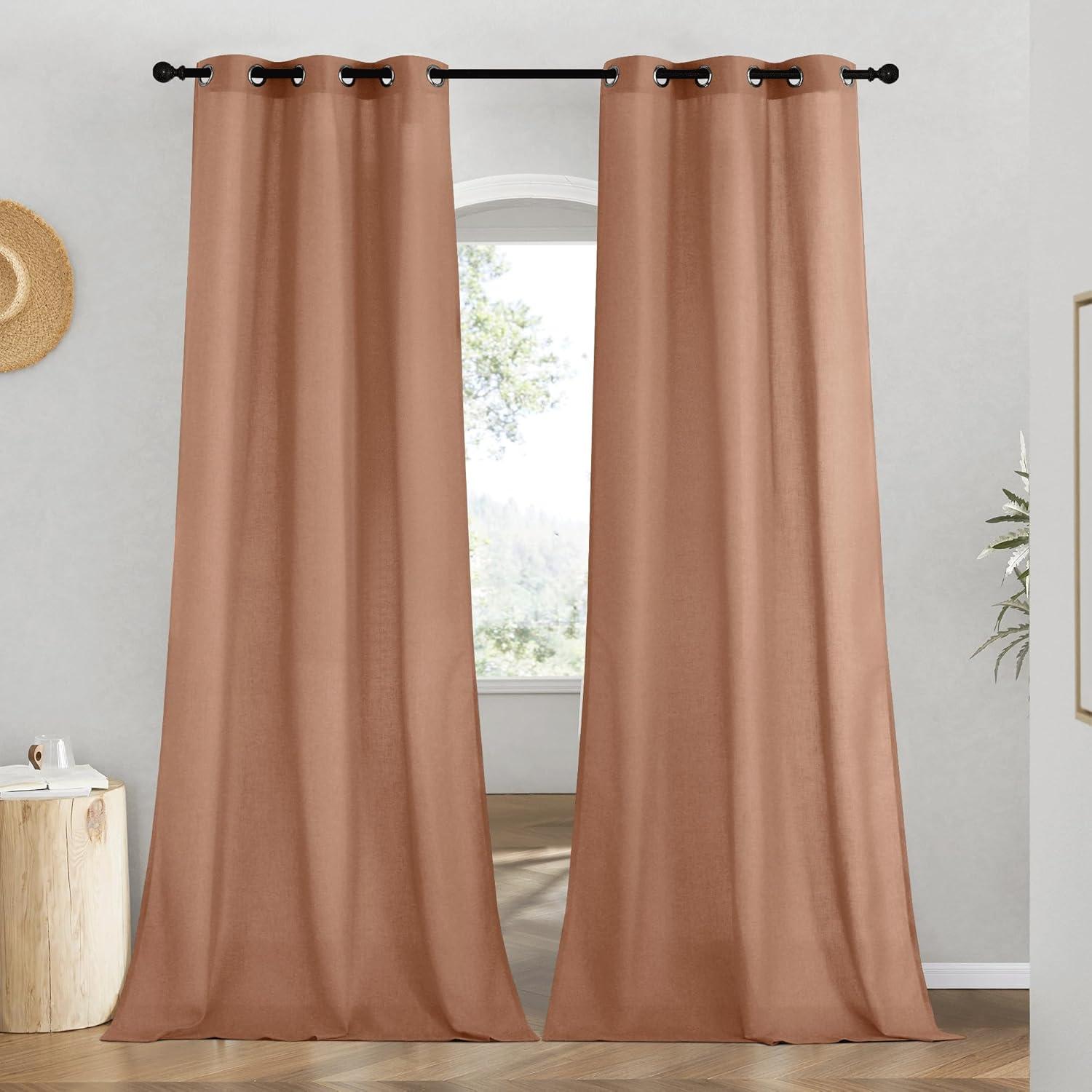 NICETOWN Rustic Linen 102 inch Long Curtains for Living Room, Grommet Privacy Added Thick Linen Weave with Light Filter Window Curtains & Drapes for Bedroom, Olive Green, W55 x L102, 2 Panels(Terracotta)