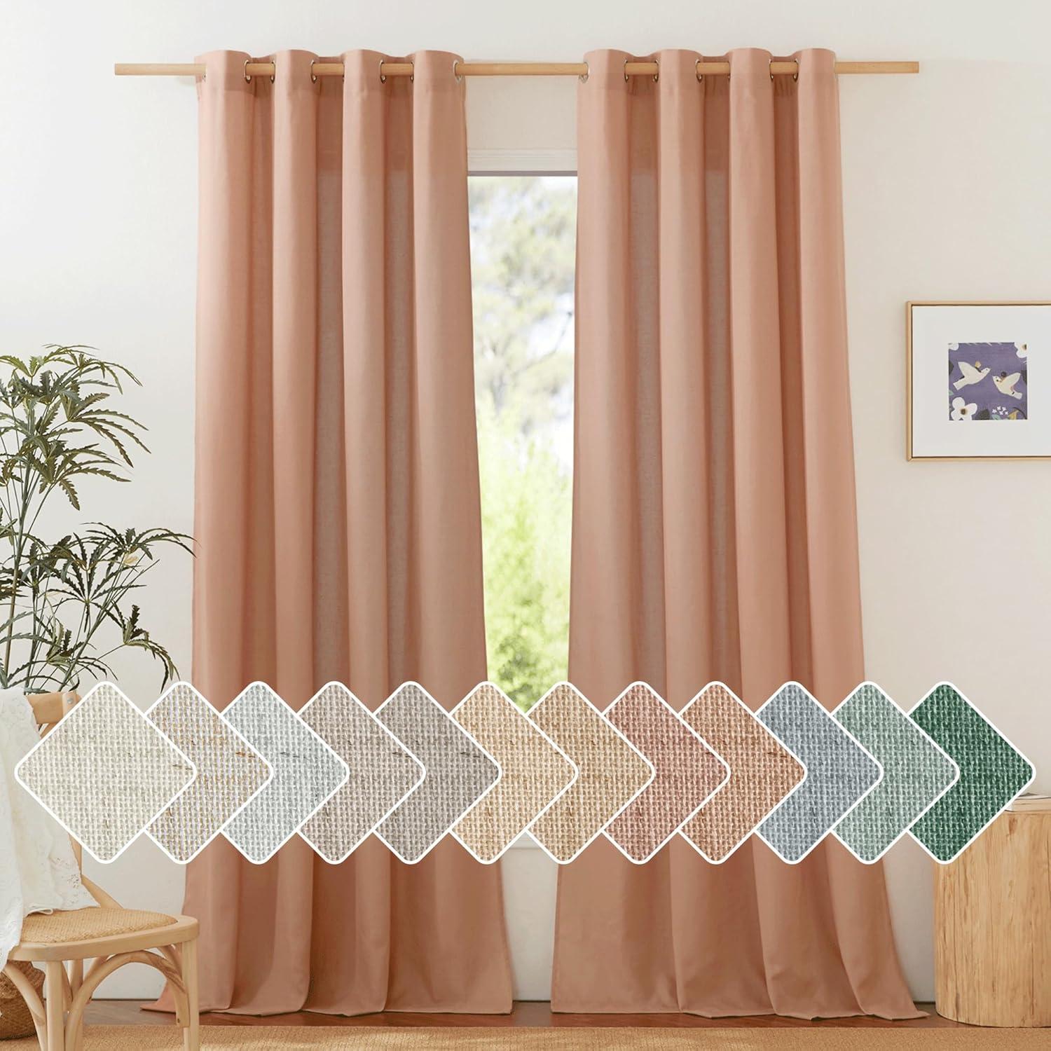 Ready-Made: The package includes 2 panels of thick flax semi-sheer linen curtains, and each measures 55″W (110″W for pair), with 8 (1.6″ inner diameter) silver grommets to suit both your standard and decorative curtain rod.
