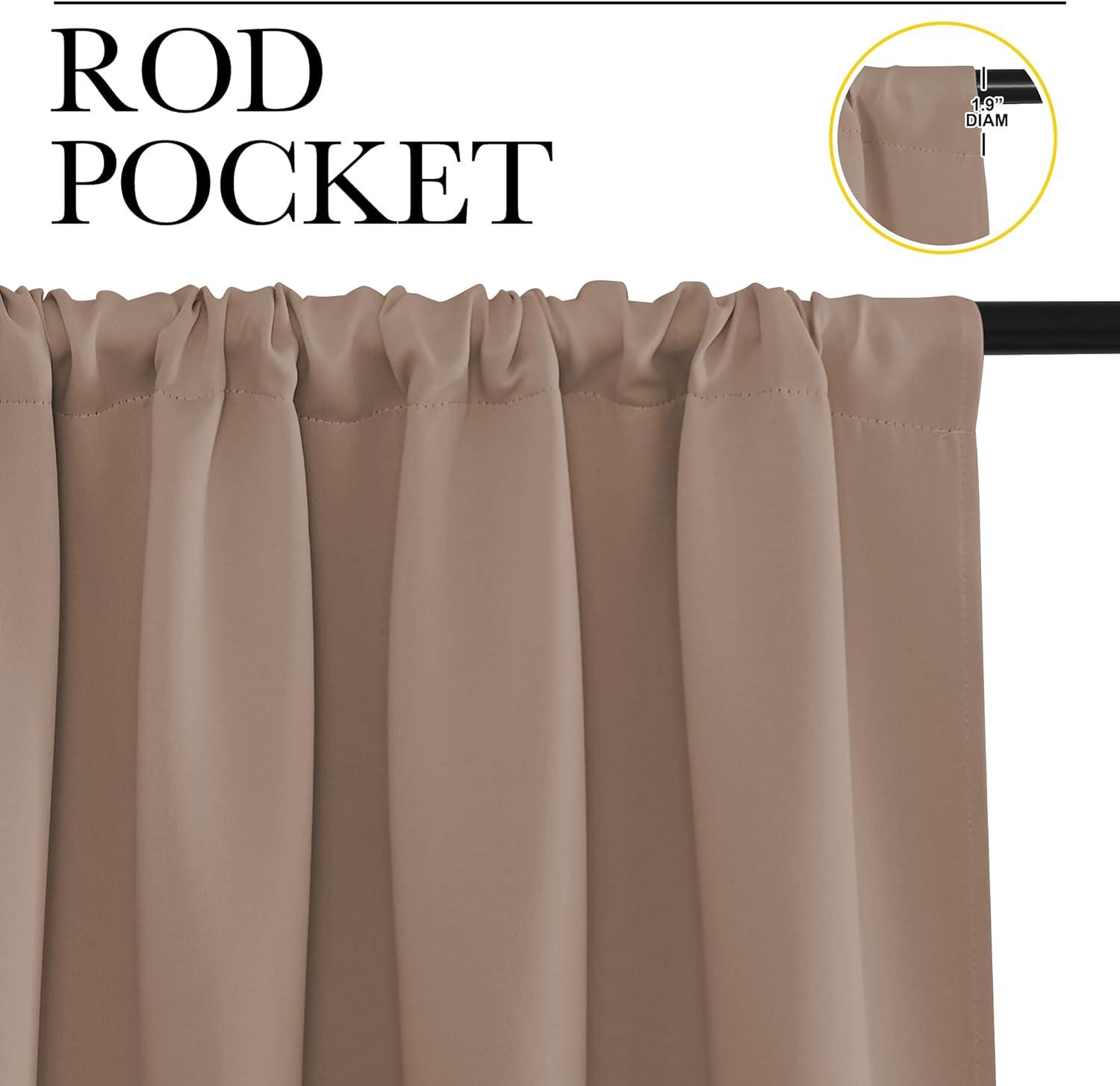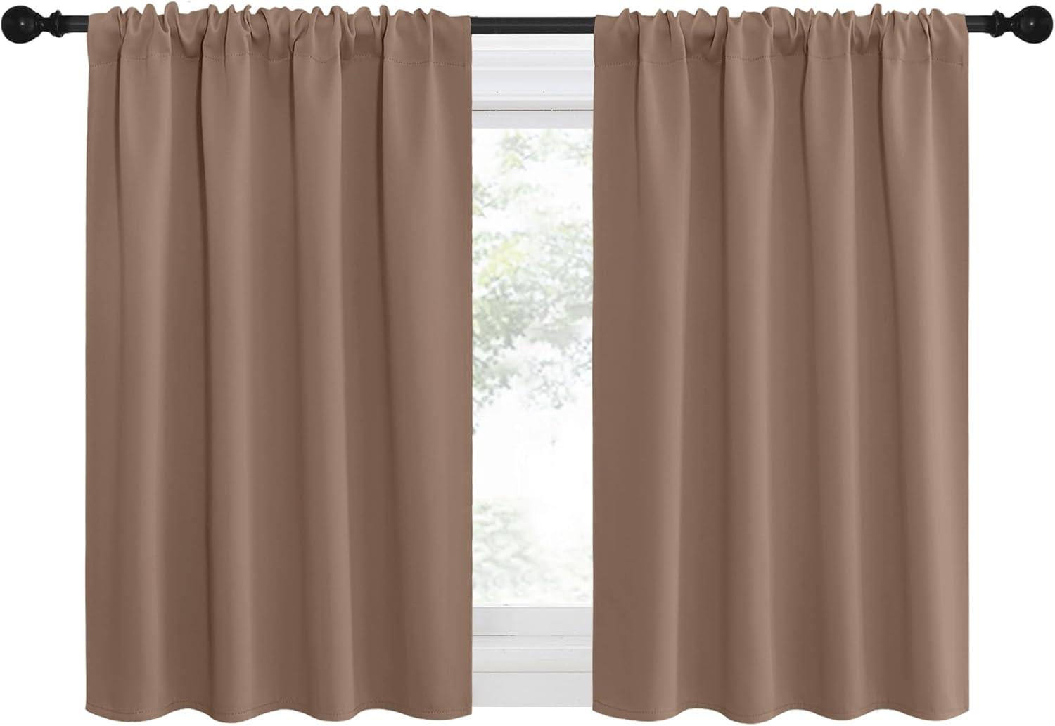ELEGANT DESIGN: 2 panels per package. Each Blackout Curtain Panel measures 34 inches wide x 30 inches long. The NICETOWN drapery is constructed with rod pocket, fitting the curtain rod of your choice up to 2 inches in diameter, making the curtains easy to install and slide.
