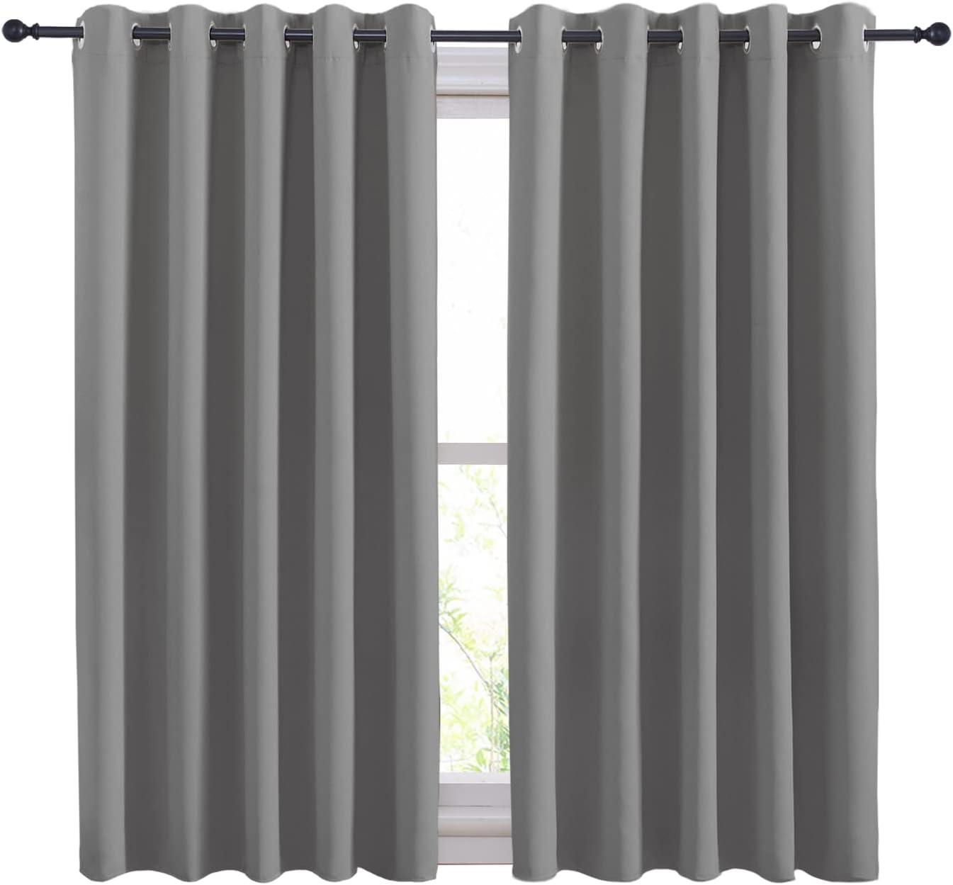 NICETOWN Silver Grey Blackout Curtain Panels for Bedroom, Thermal Insulated Extra Wide Blackout Draperies and Drapes for Basement (2 Panels, W70 x L54-inch)
