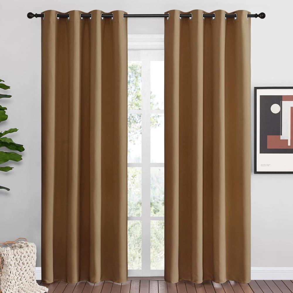 Serve Well: Curtains impede 85%-99% light and UV rays(Dark color curtains work well). Noise-reducing, better TV viewing thanks to the innovative triple weave technology. Thread trimmed and wrinkle-free, both sides are the same color.