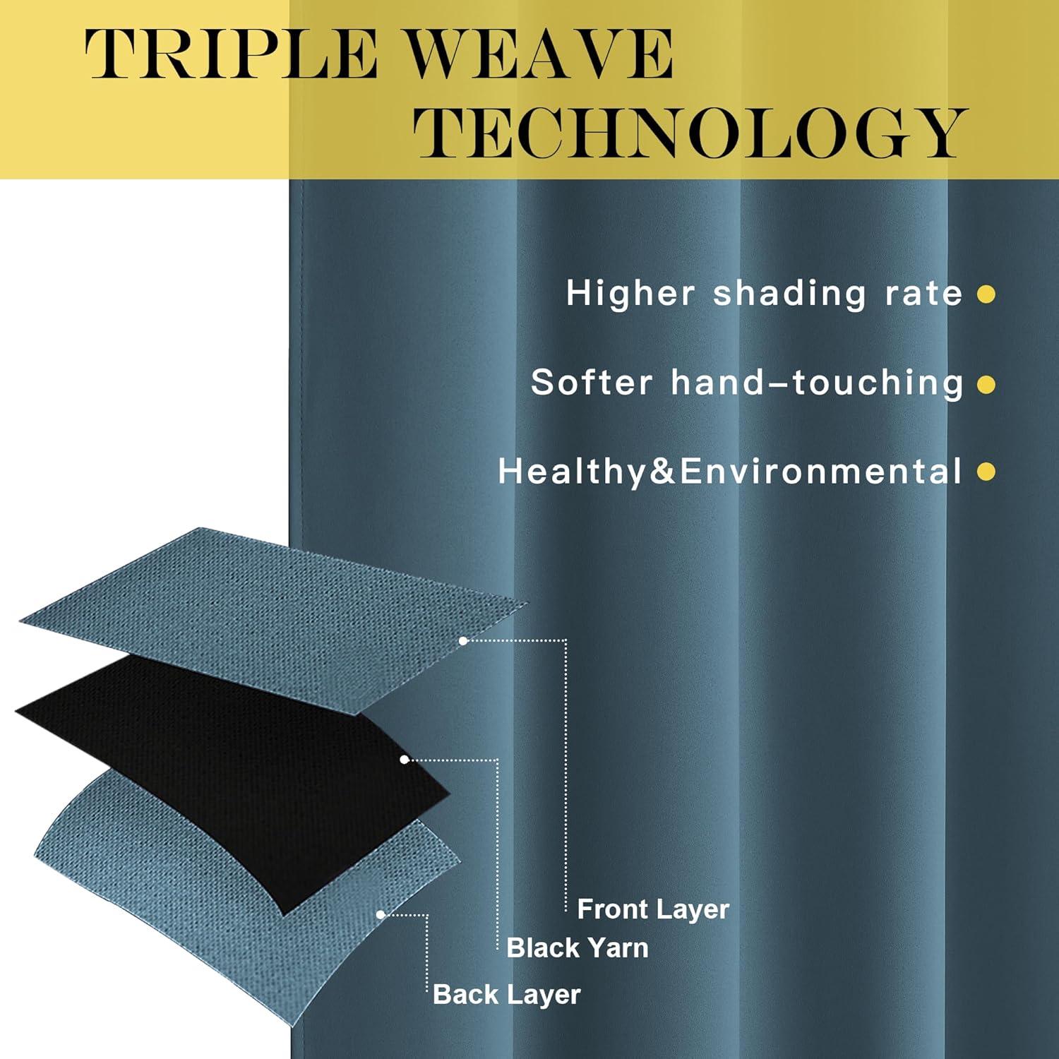 AMAZING FABRIC: The blackout curtain's fabric is a super soft and heavily innovative triple-weave polyester fabric. The Same material back as of front makes it appear more elegant. The 8 sliver grommets top (inner diameter is 1.6-inch) adds a modern touch and easy hanging.
