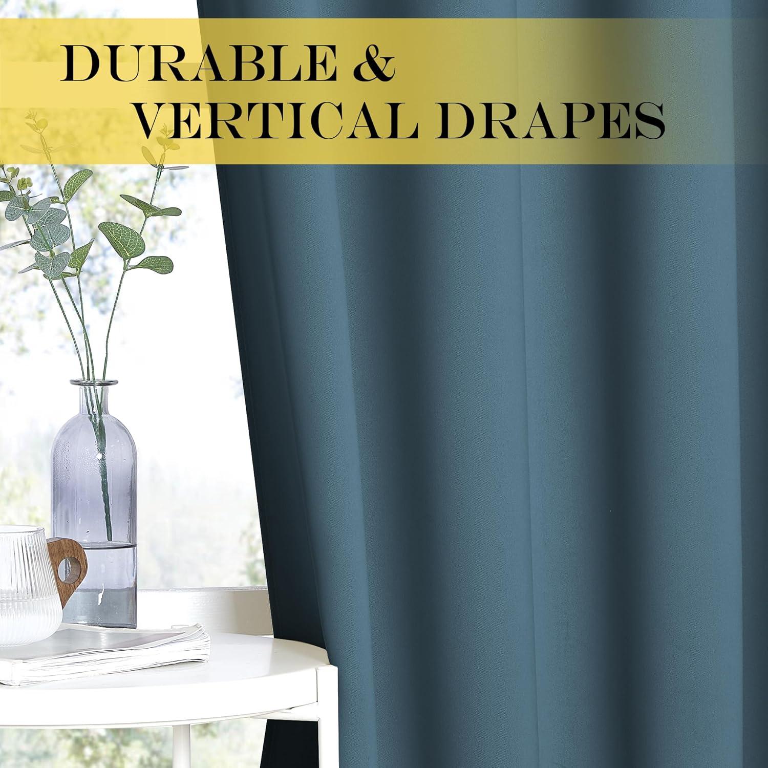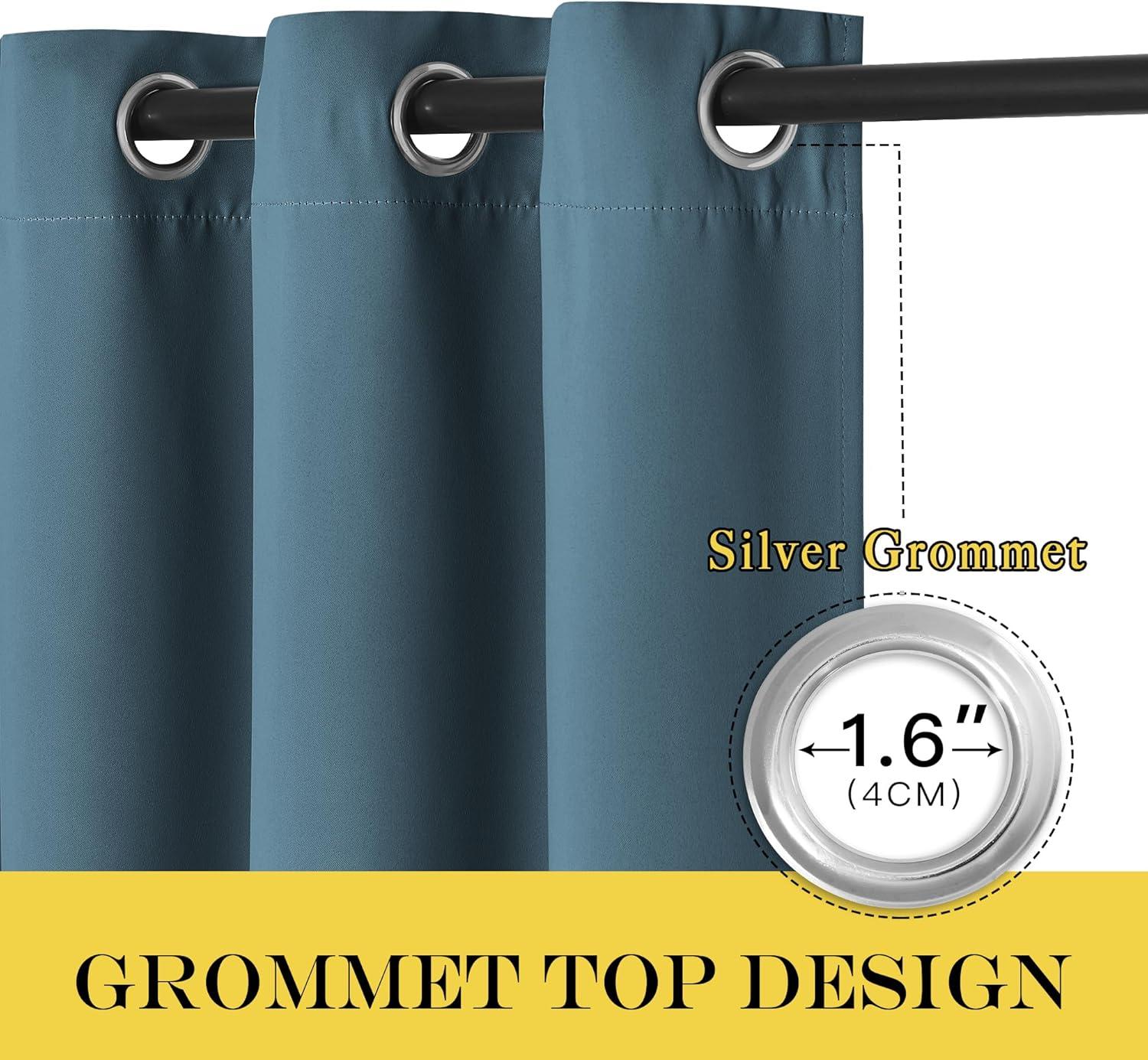 NICETOWN Grommet Blackout Curtains for Living Room Bedroom Window Panels, Thermal Insulated Soundproof Sliding Door Curtains for Patio Glass Door (W52 x L95 Inch, 2 Panels, Dark Mallard)(Stone Blue)