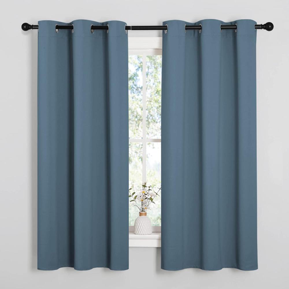 imageNICETOWN Smoky Blue Blackout Curtains 45 inches Length for Cafe 2 Panels 34quot Wide Thermal Insulated Decoration Drapes for Small Window