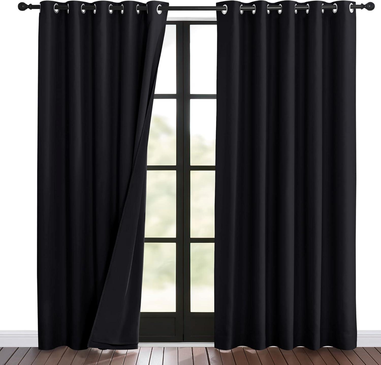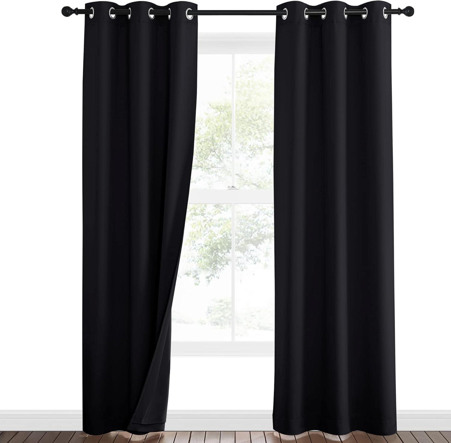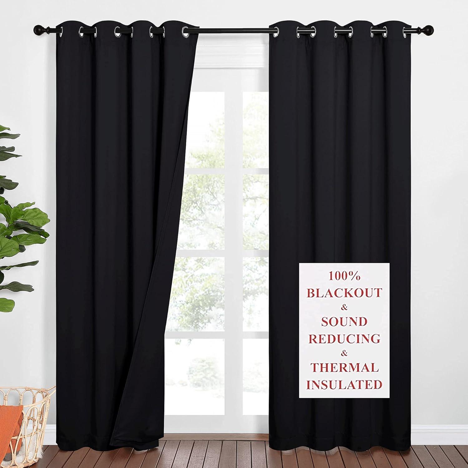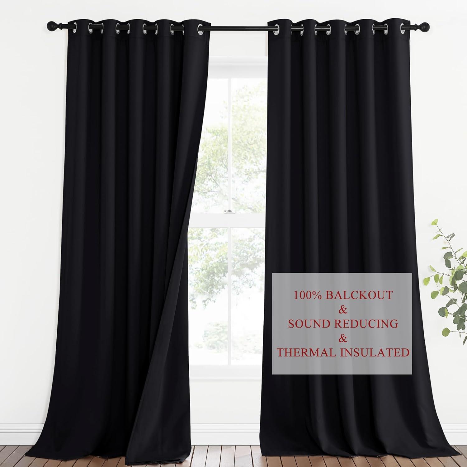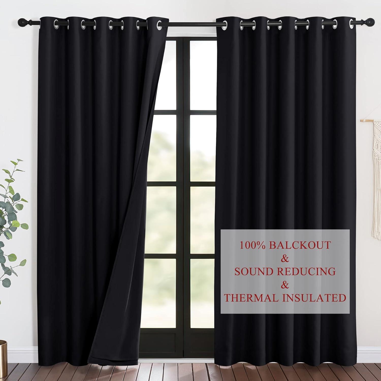 NICETOWN Sound Barrier 100% Blackout Divider Curtains 84″, Noise, Heat and Cold Blocking Drapes with Felt Fabric Lining for Noise Reducing/Nursery/Daytime Sleep/Bedroom (White, 2 PCs, 52″ Wide)(Black)