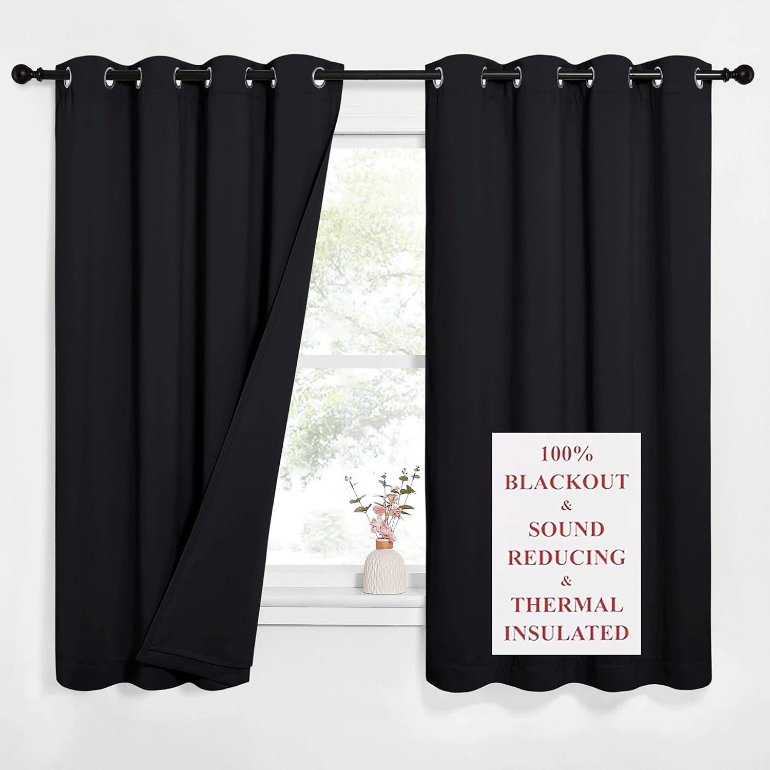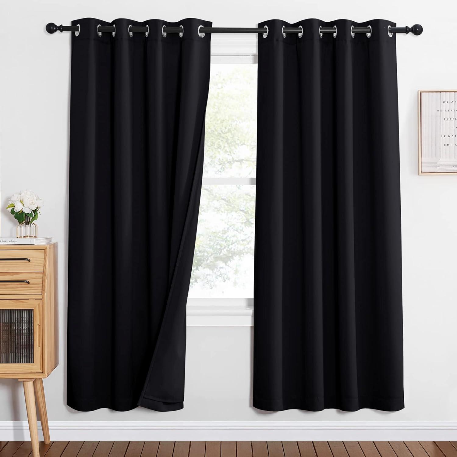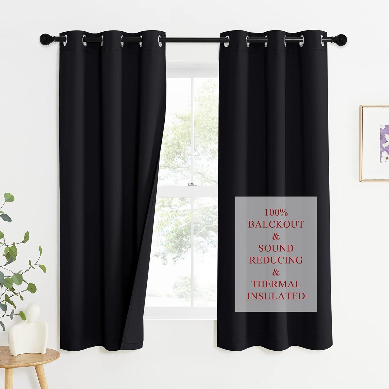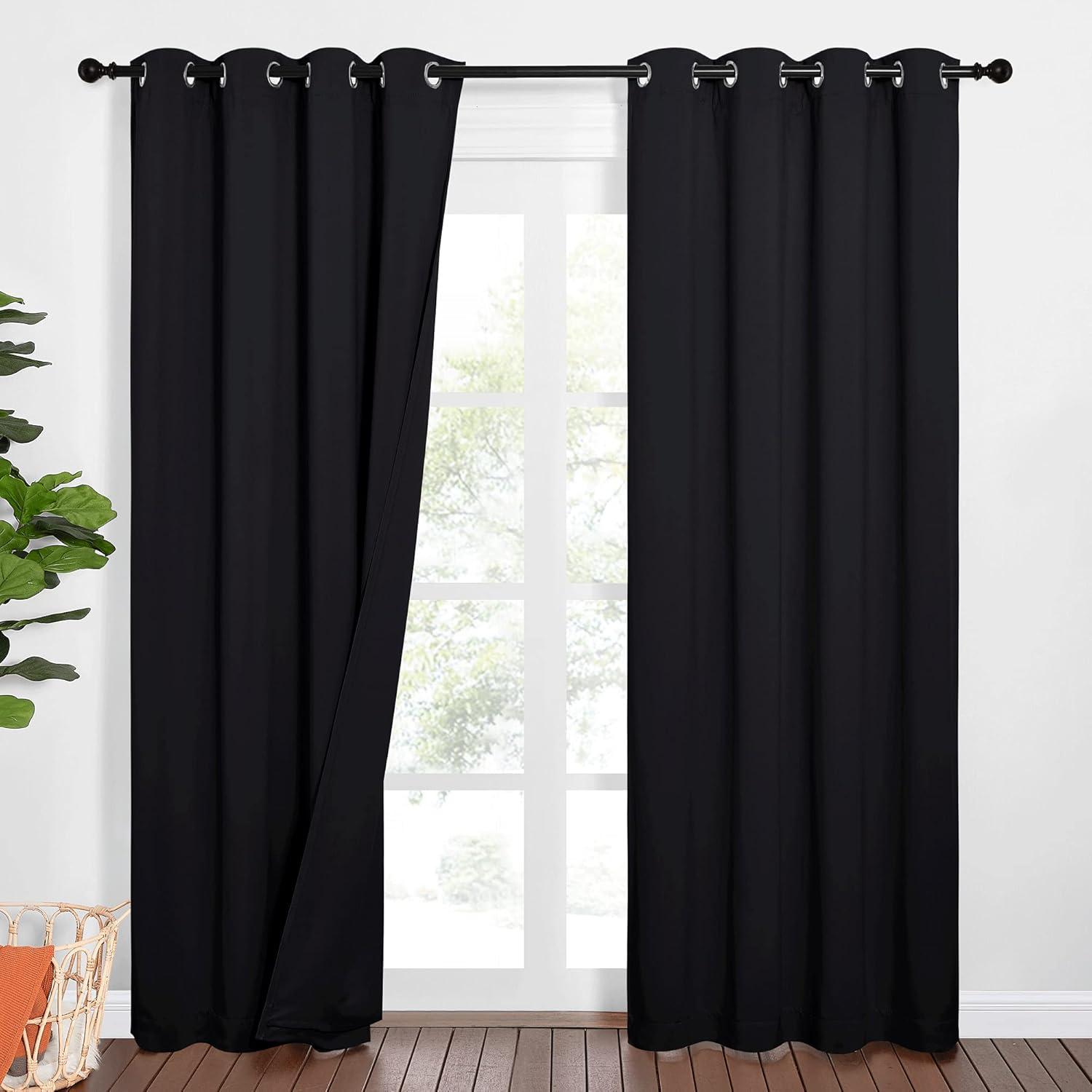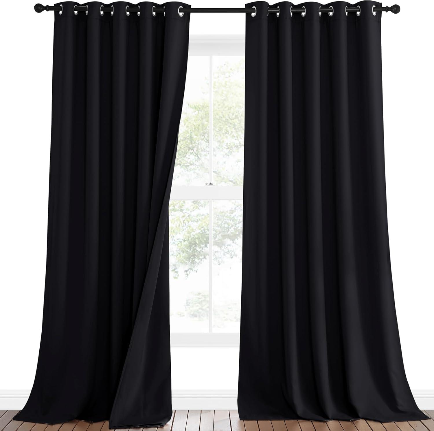 NICETOWN Sound Barrier 100% Blackout Divider Curtains 84″, Noise, Heat and Cold Blocking Drapes with Felt Fabric Lining for Noise Reducing/Nursery/Daytime Sleep/Bedroom (White, 2 PCs, 52″ Wide)(Black)
