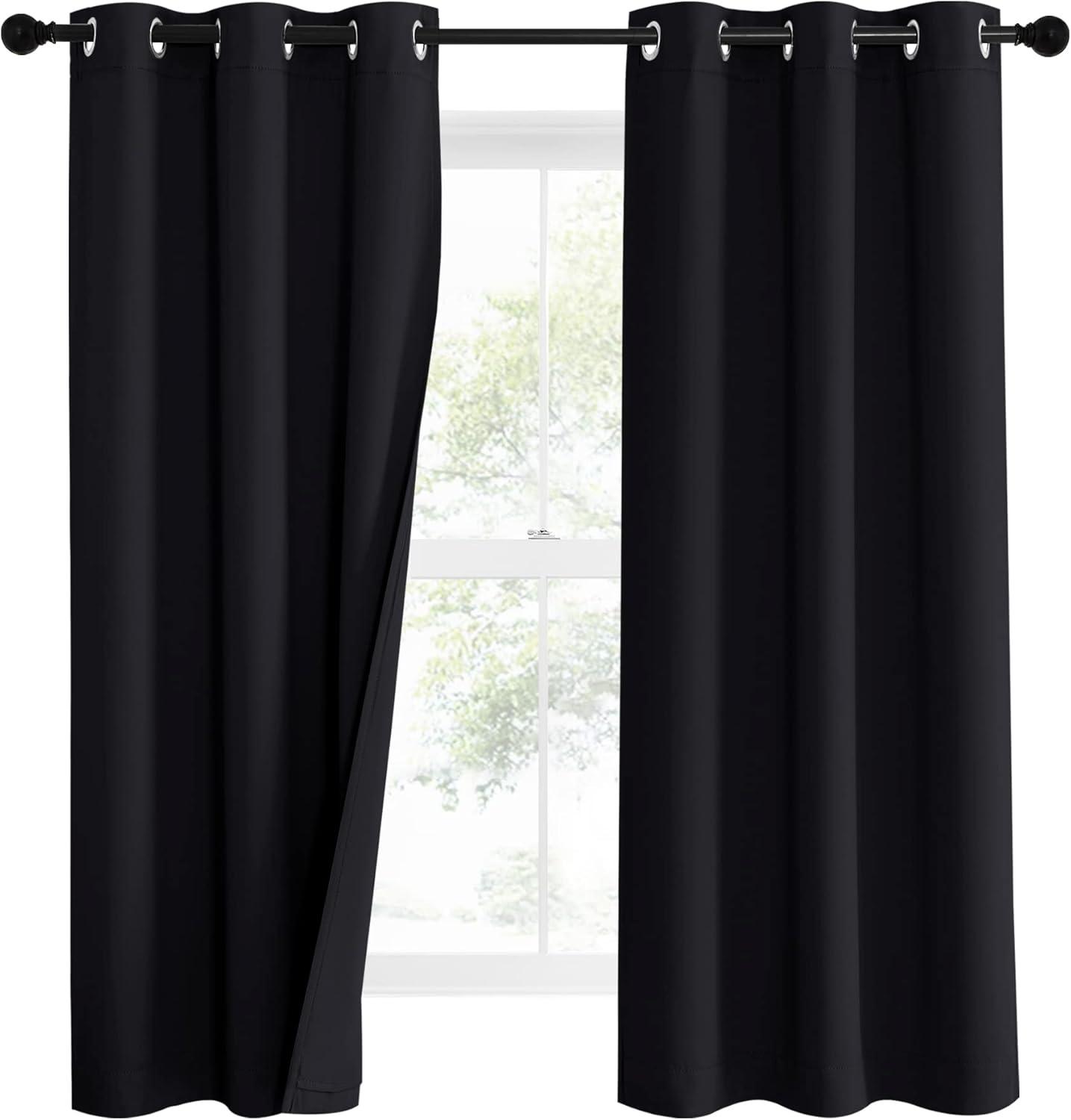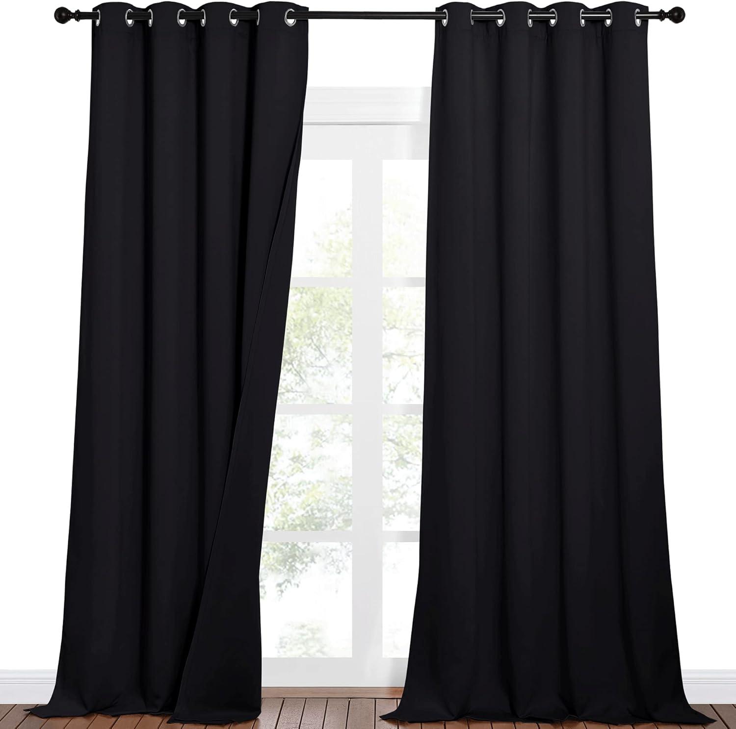 NICETOWN Sound Barrier 100% Blackout Divider Curtains 84", Noise, Heat and Cold Blocking Drapes with Felt Fabric Lining for Noise Reducing/Nursery/Daytime Sleep/Bedroom (White, 2 PCs, 52" Wide)(Black)