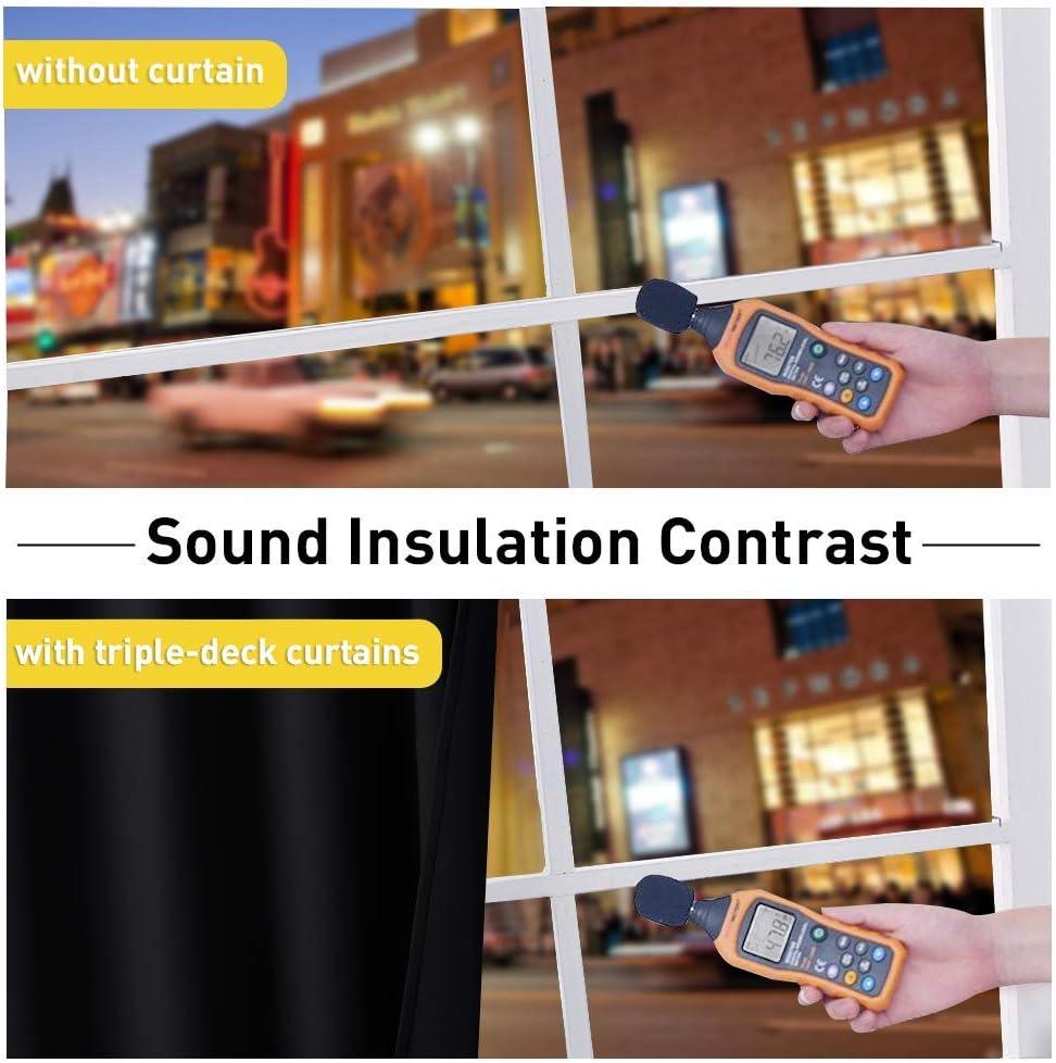 THERMAL INSULATION: 3-in-1 curtains can balance room temperature by insulating against summer HEAT and winter CHILL meanwhile protect PRIVACY. Help you to reduce energy costs. Tips: You will need a rod that is strong with a center support to support the heavy curtains.