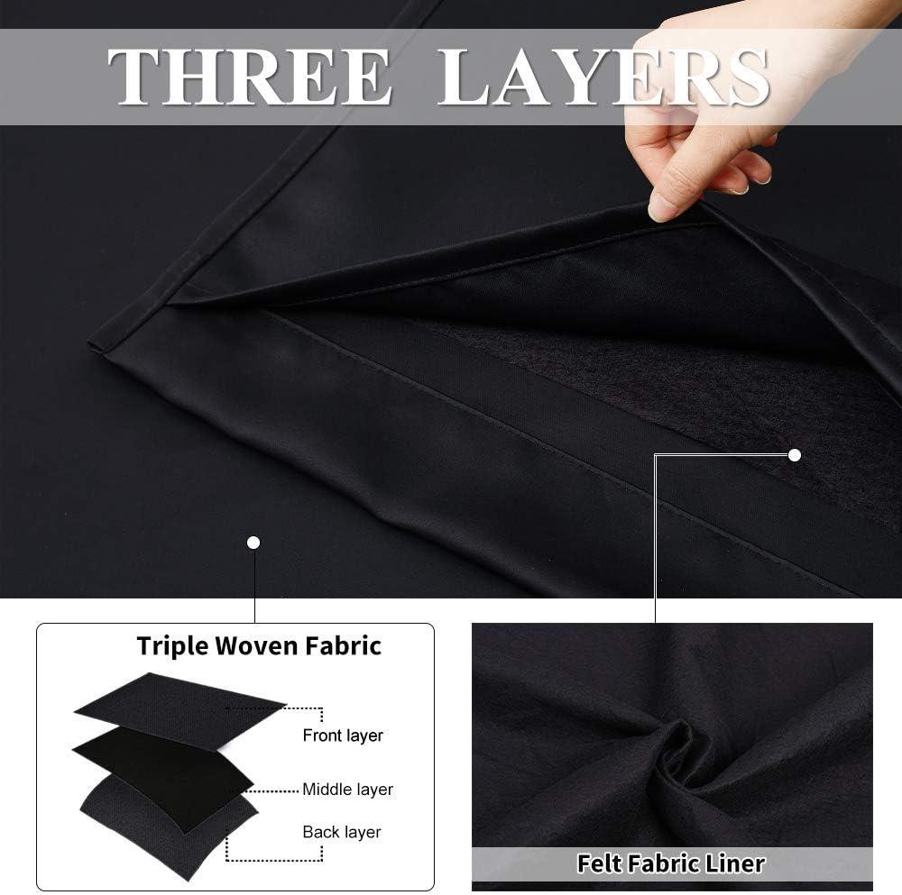 100% BLACKOUT: Curtains are made with 2 layers triple weave fabric and 1 layer detachable felt fabric liner. Thick enough to completely keep out the 100% SUNLIGHT and UV RAY. Offering you a real dark environment, a great choice for any room you would like to turn day into night.