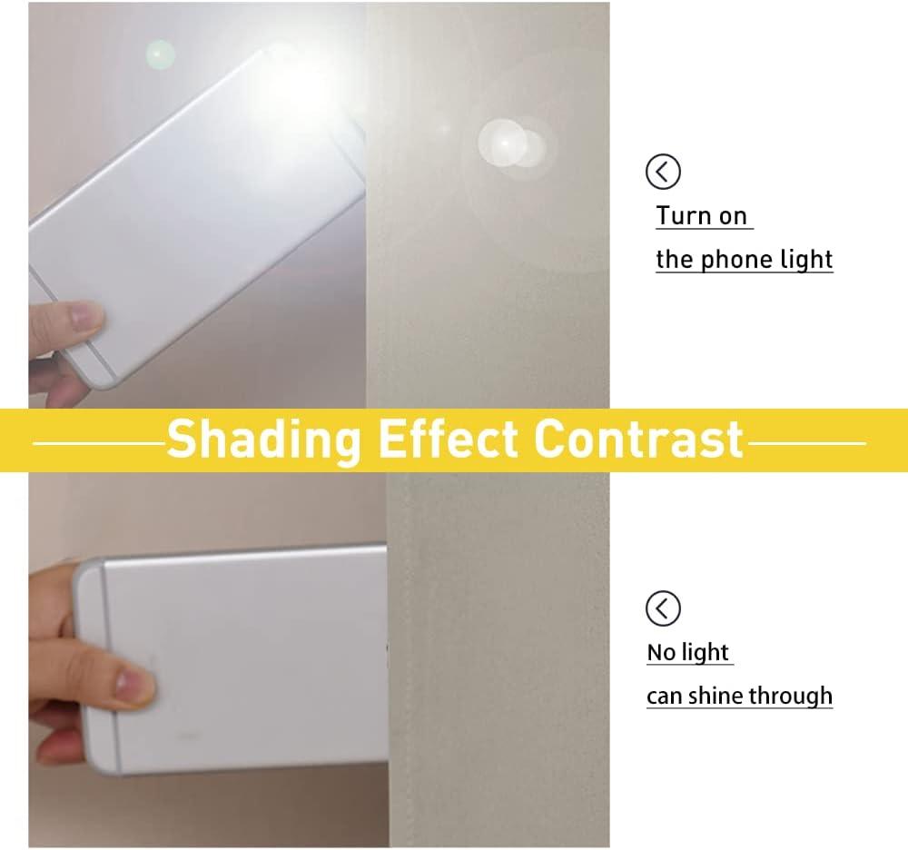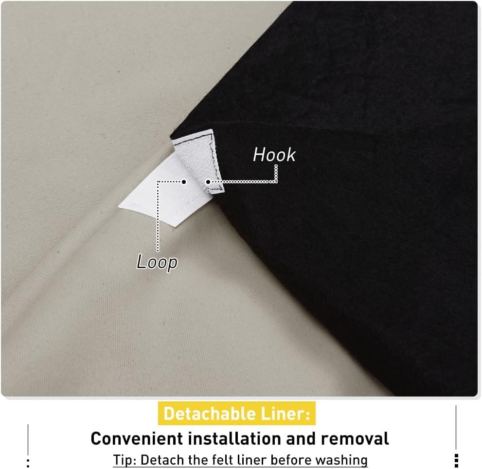 100% BLACKOUT: Curtains are made with 2 layers triple weave fabric and 1 layer detachable felt fabric liner. Thick enough to completely keep out the 100% SUNLIGHT and UV RAY. Offering you a real dark environment, a great choice for any room you would like to turn day into night.