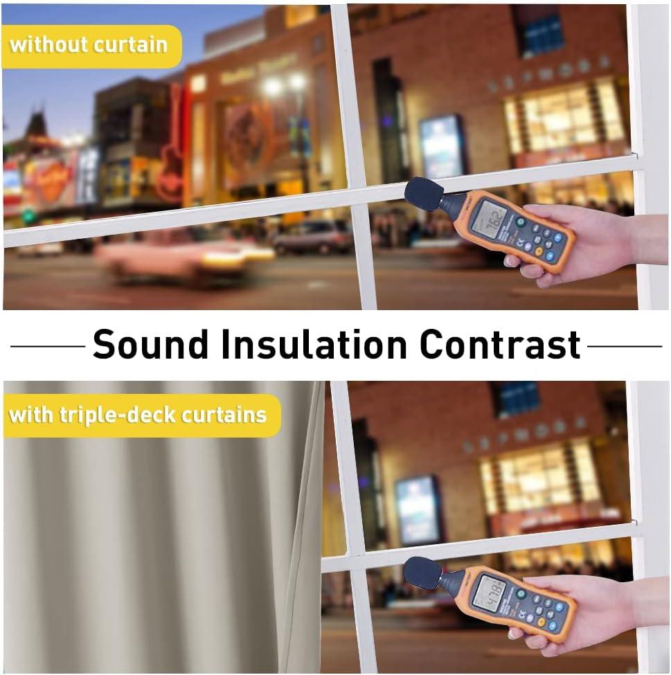THERMAL INSULATION: 3-in-1 curtains can balance room temperature by insulating against summer HEAT and winter CHILL meanwhile protect PRIVACY. Help you to reduce energy costs. Tips: You will need a rod that is strong with a center support to support the heavy curtains.