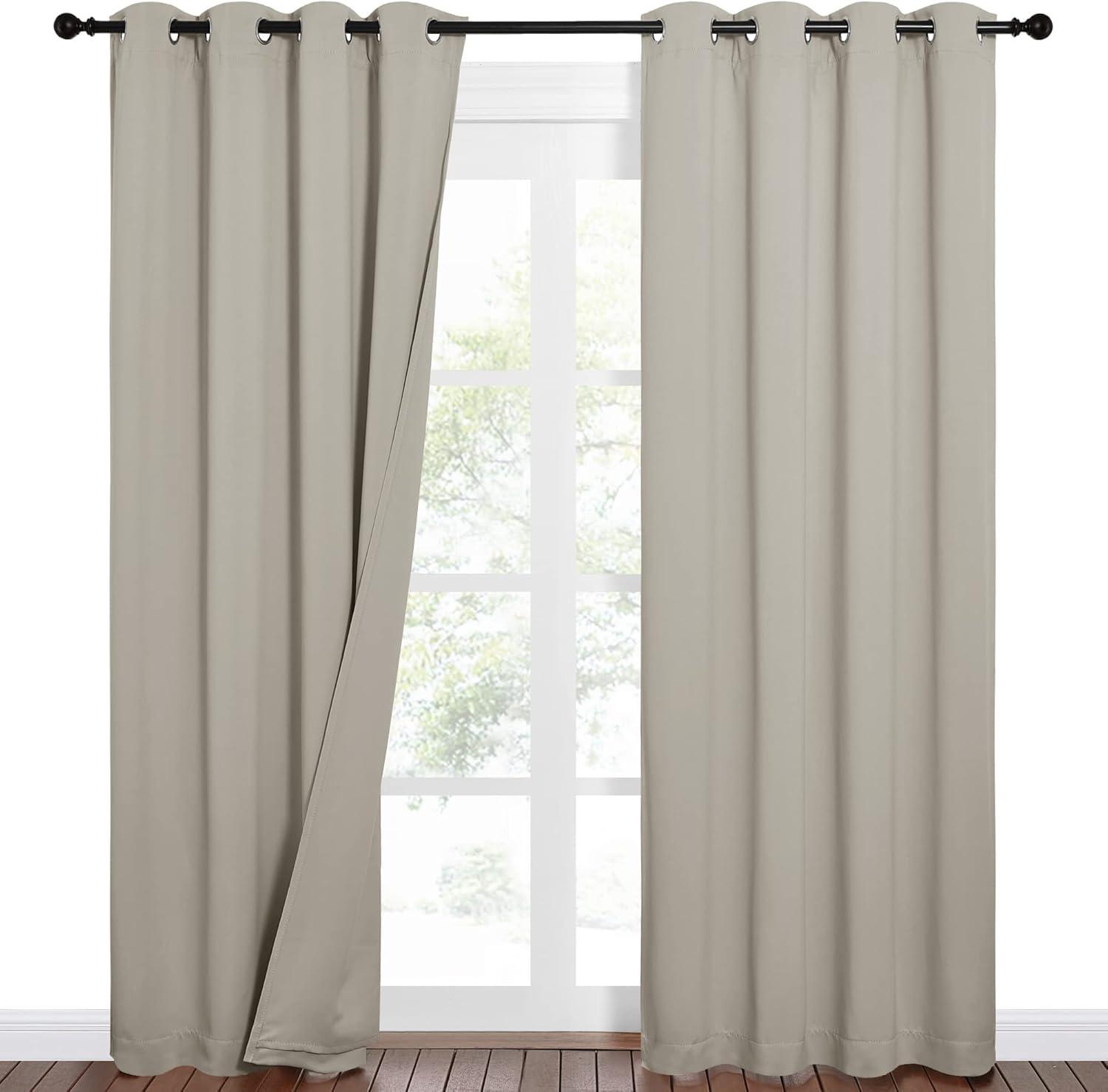 NICETOWN Sound Barrier 100% Blackout Divider Curtains 84″, Noise, Heat and Cold Blocking Drapes with Felt Fabric Lining for Noise Reducing/Nursery/Daytime Sleep/Bedroom (White, 2 PCs, 52″ Wide)(Natural)