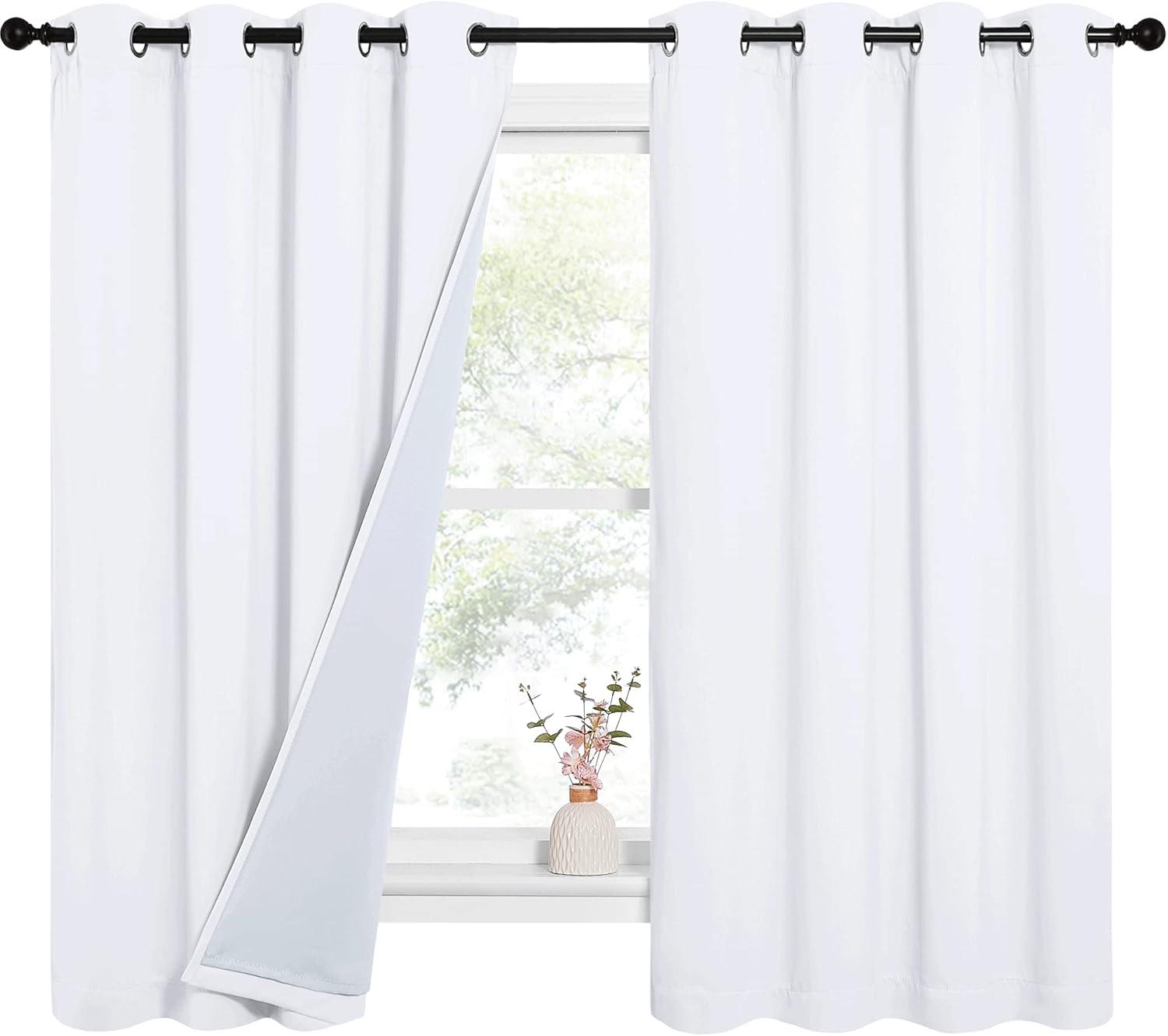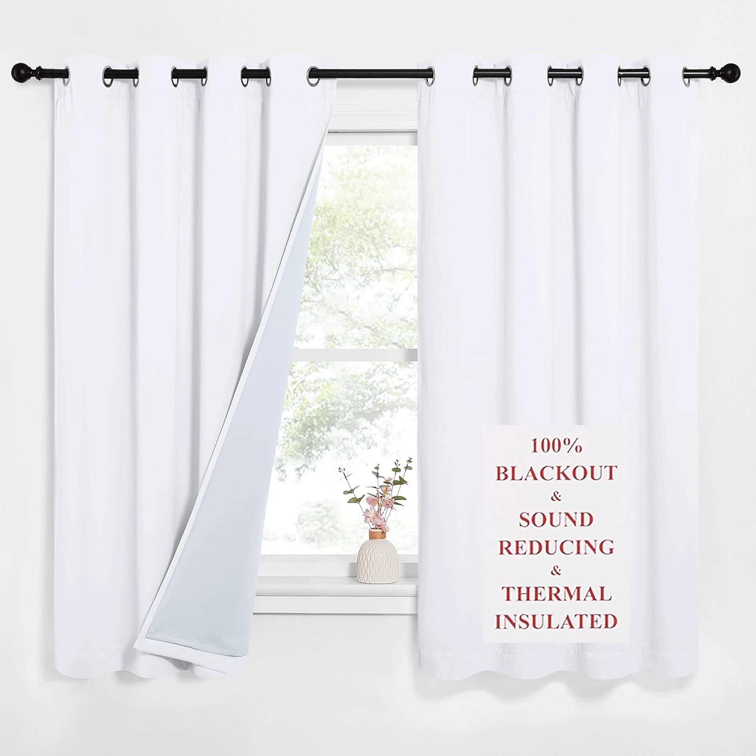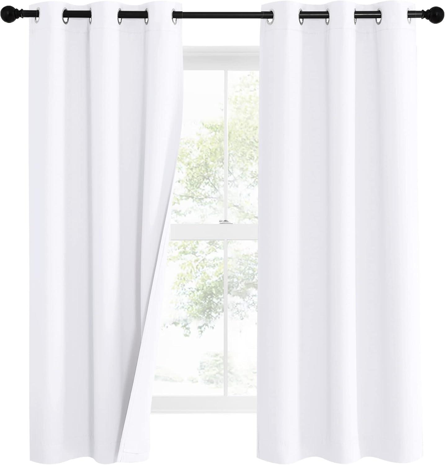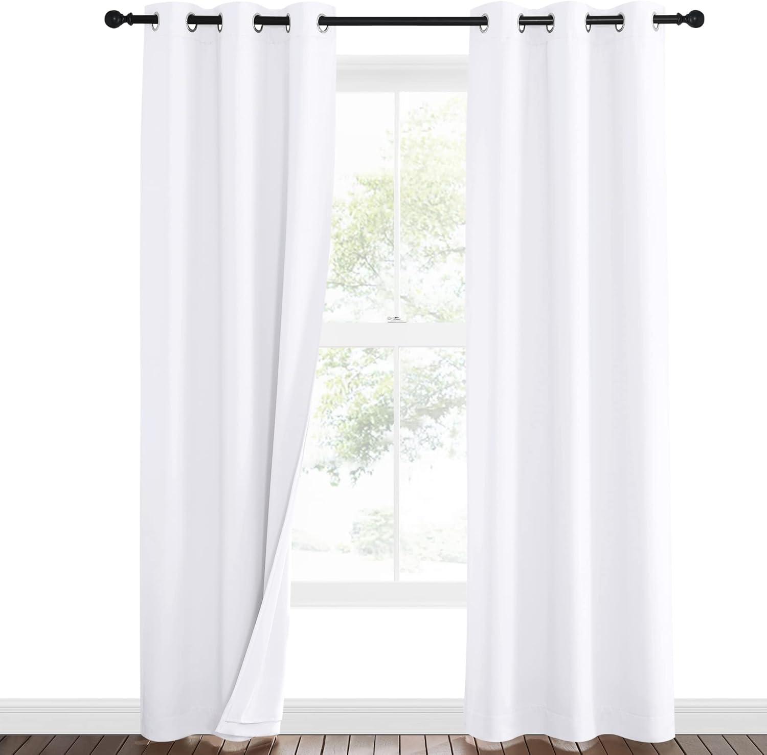 NICETOWN Sound Barrier 100% Blackout Divider Curtains 84″, Noise, Heat and Cold Blocking Drapes with Felt Fabric Lining for Noise Reducing/Nursery/Daytime Sleep/Bedroom (White, 2 PCs, 52″ Wide)(Pure White)