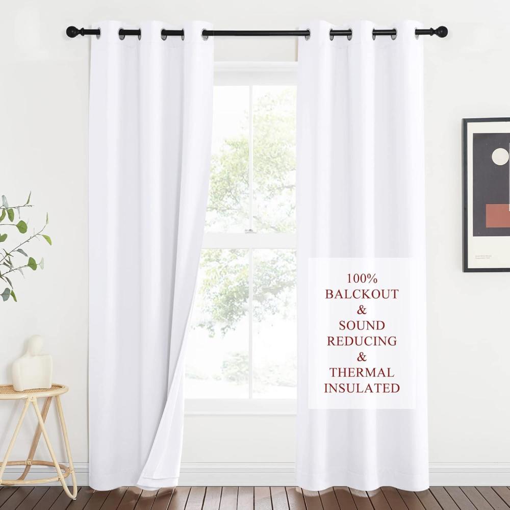 Get more for your money with our exclusive bundle deals on NICETOWN Sound Barrier 100% Blackout Divider Curtains 84", Noise, Heat and Cold Blocking Drapes with Felt Fabric Lining for Noise Reducing/Nursery/Daytime Sleep/Bedroom (White, 2 PCs, 52" Wide)(Pure White) and accessories.