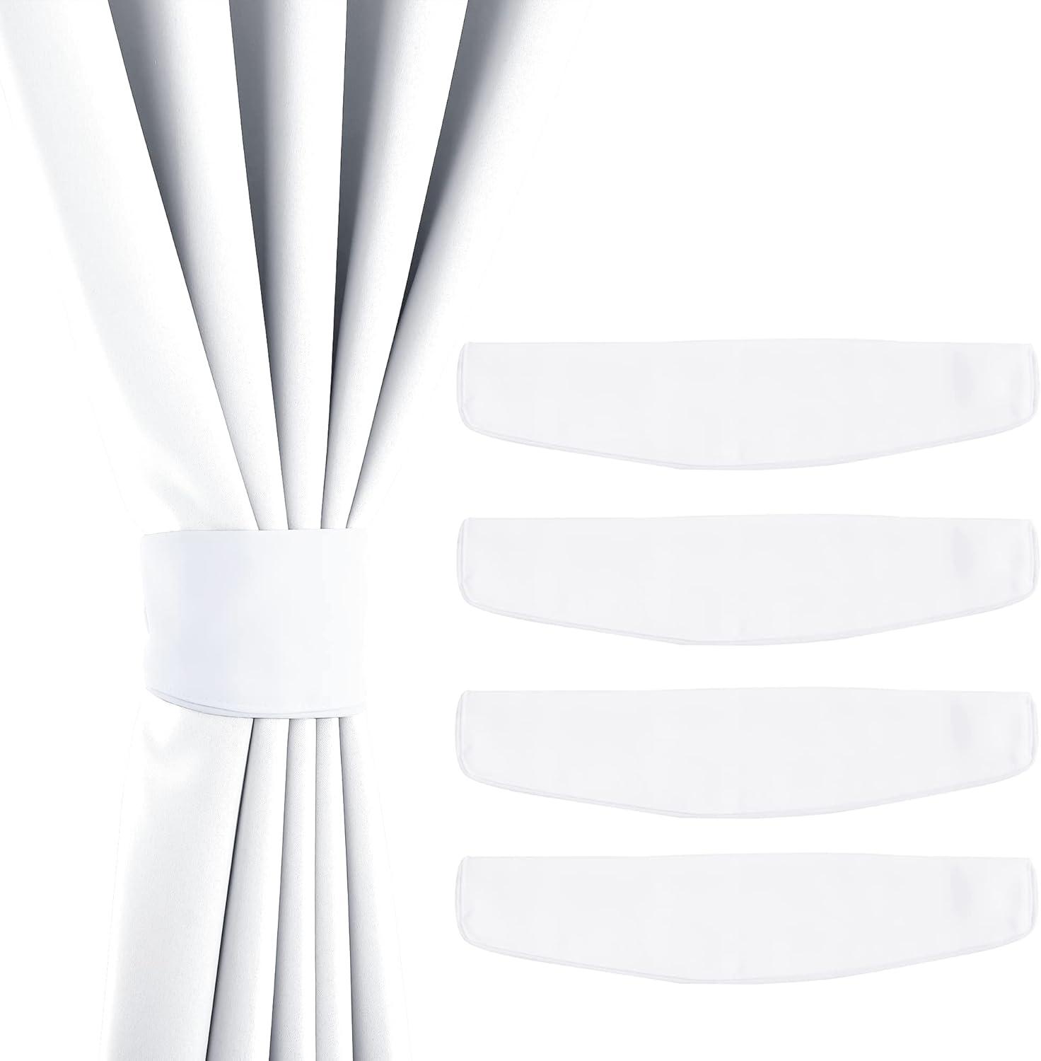 NICETOWN Strong Magnetic Curtain Tiebacks - Modern Simple Style Curtain Ties Backs Holdbacks Holders for Indoor/Outdoor Curtains (White, 18.5 X 4 Inches, Set of 4)(White)